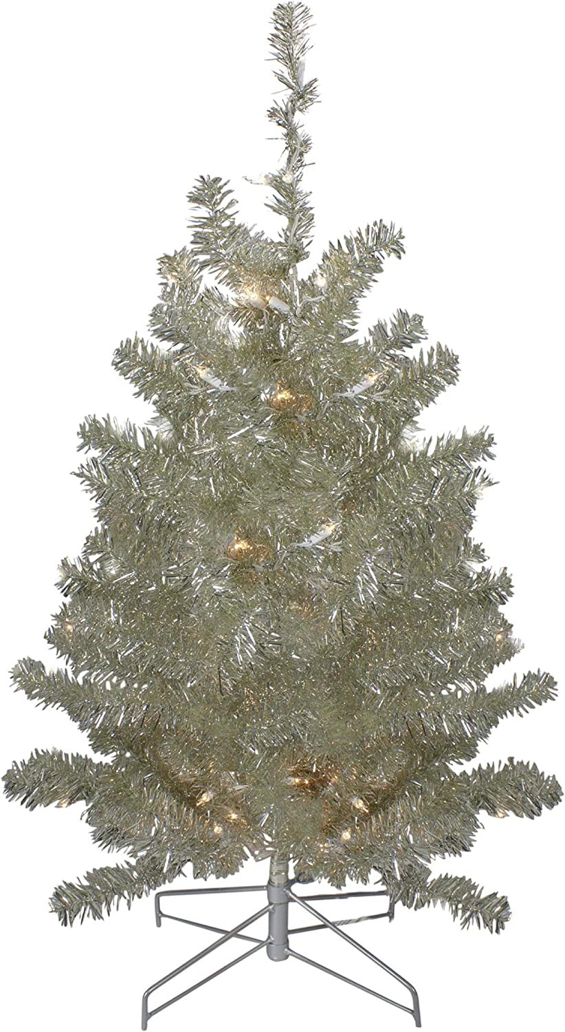 Northlight 3' Metallic Sheer Champagne Artificial Tinsel Christmas Tree - Clear Lights