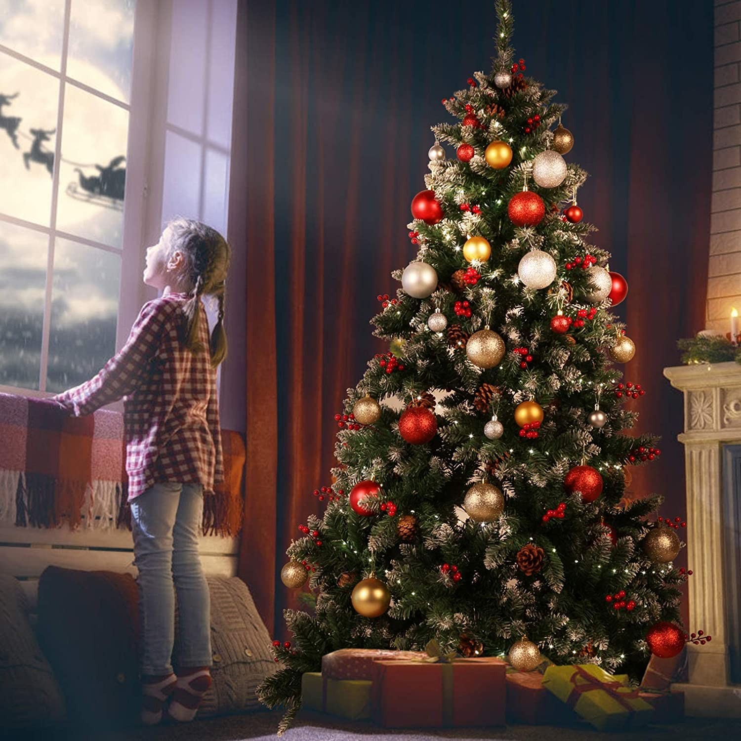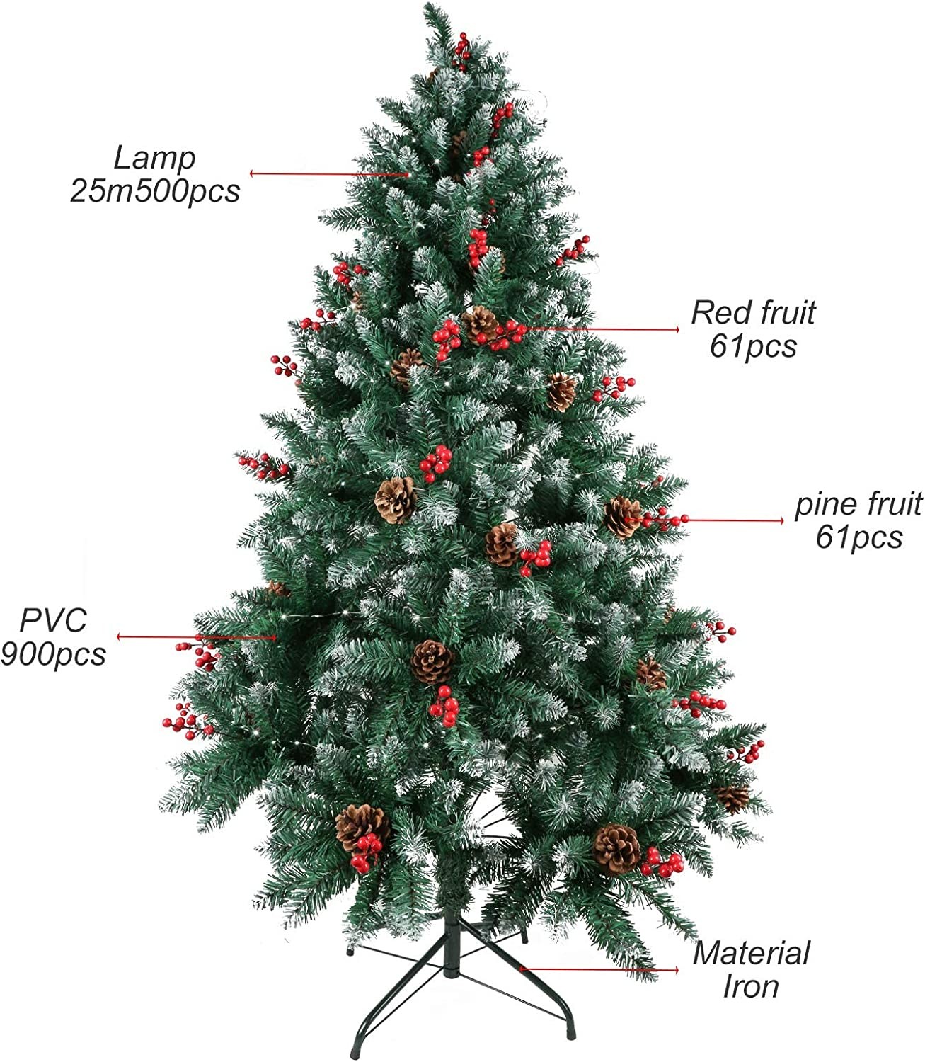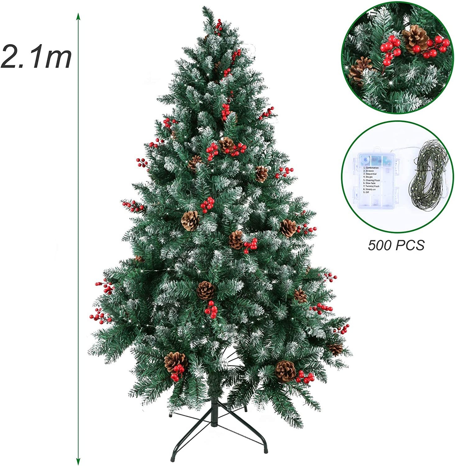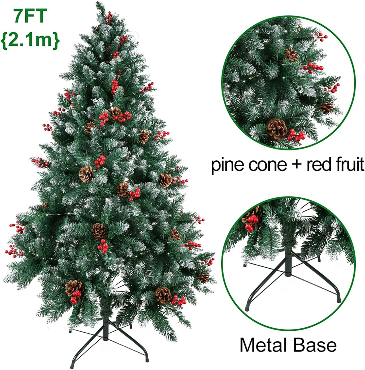 ?Realistic Appearance: Our artificial branches look super lifelike. With 900 carefully crafted branching techniquesW +red cones and pine cones , This 2.1M high Christmas tree can attract people's attention in a variety of scenes during this period. ?Eco-friendly Material: The blades of our christmas tree are made of high quality PVC material, which enhanced the waterproofness and makes the tree looks more real and more full, but also add the anti-crush capacity to the tree.The all-metal trunk branches and iron frame used in the Christmas tree can definitely provide a firmer support and ensure stability for the Christmas tree. It can serve you for a long time. ?3 Step to Set Up: 1.Put x on the floor and put the branches together by order.2.Open the 900 branches.3.Decorate the tree as you like.Quick and easy assembly or disassembly, setting can be completed without tools, which is convenient and quick. ?Beautiful and Festive: It looks like a real pine tree in your living room, but there are no extra decorations. You can decorate it to any effect you want. We leave the imaginary space to you and your family. ?Attentive Service: If you have any questions or problems,please contact with us,our service dapartment will give you a response to help you within 24 hours.