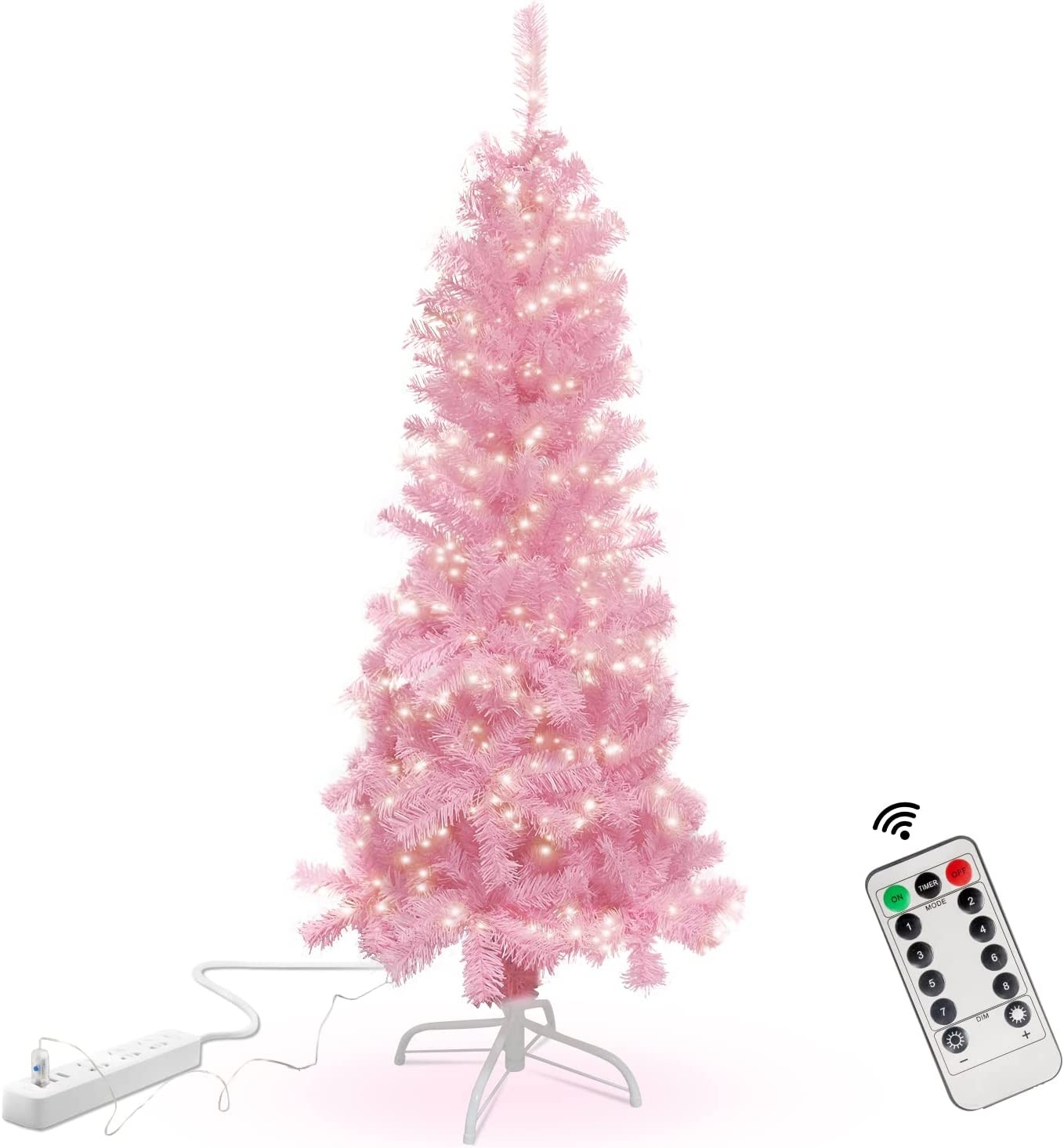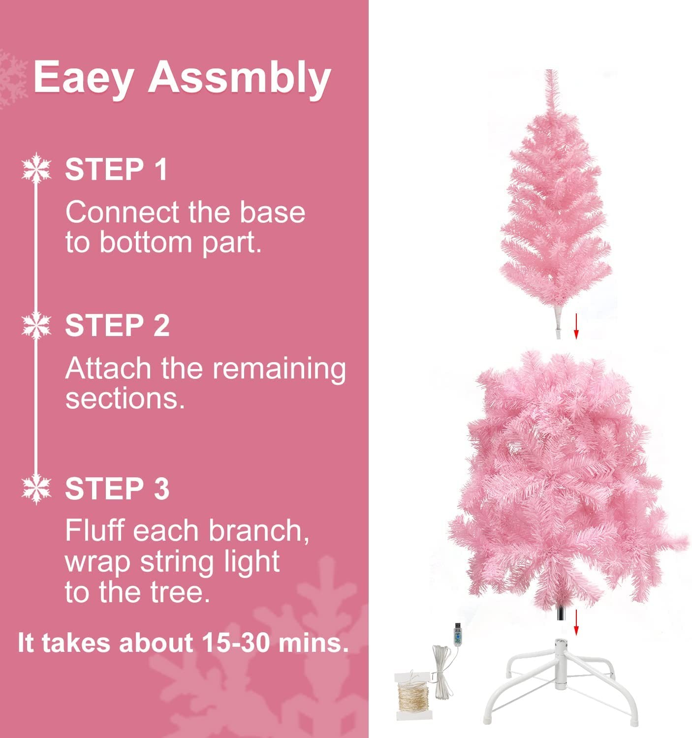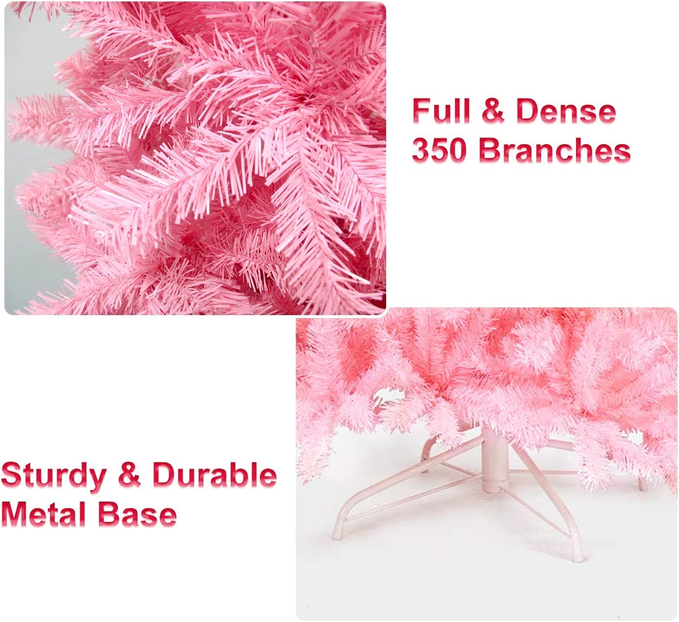 【Small Pink Christmas Tree 4 Ft】-4 Feet Tall Artificial Christmas Tree with Lights. The skinny light pink Christmas tree has 350 branches tips to create a full and thick look. The light pink Christmas tree is very natural and romantic, Bringing the vibrant feel of Xmas into your home. The unlit Christmas tree that's sure to glitter and shine wherever you place it.
