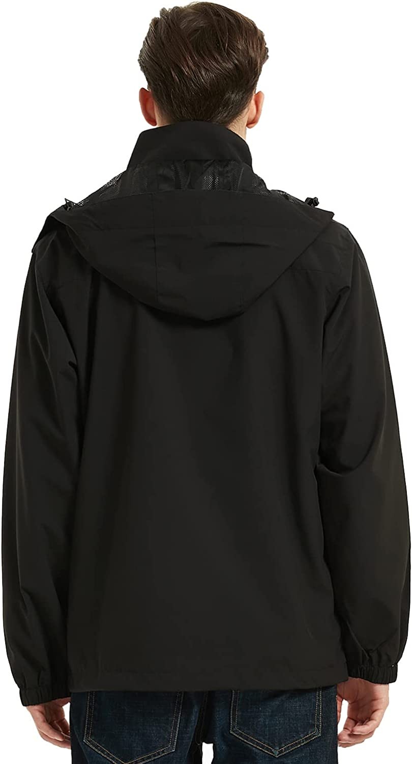 MOERDENG Men's Waterproof Rain Jacket Lightweight Hooded Spring Fall Raincoat for Hiking Travel Outdoor
