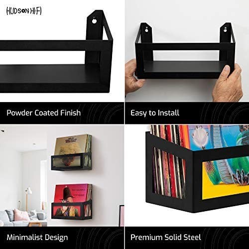 Hudson Hi-Fi Wall Mount Vinyl Record Storage 25-Album Display Holder - Black Satin - Two Pack