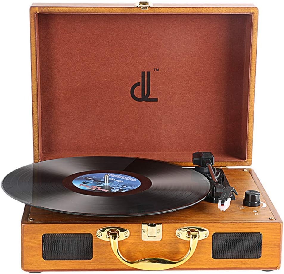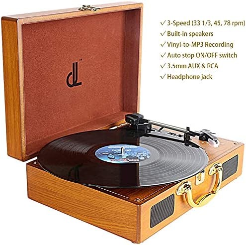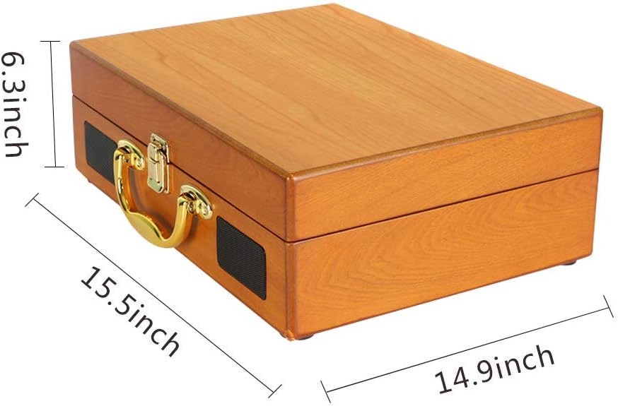 ♬【Convert Vinyl to Computer】This record play can not only play vinyls in 3-speed but also convert songs of vinyls to your computer in MP3 format easily. The convert cable and disk included in package. ♬【Expanded Connection Options】Playing songs of your non-Bluetooth devices through connecting them to stereo AUX IN of the turntable easily. Also,it can be connected to external speakers via the stereo LINE OUT to play vinyls.The AXU IN and LINE OUT cables included in the package. For personal listening, connect your headphones to the headphone jack. ♬【Take Your Tunes Anywhere】Perfect size and weight.You can shut the cover meanwhile keep vinyl playing and pick it up like a mini suitcase anywhere. The blend in retro and contemporary design give you the ultimate flexibility to listen to music where you want and how you want – a great choice for vinyl lovers. ♬【Premium Sound Quality】This 3-speed (33 1/3, 45, 78 rpm) record player features UPGRADED sound quality with minimum vibrations because of the premium build-in speakers at 2*1 wattage. An extra stylus is included. ♬【Retro Style and Spotless Craftsmanship】The record player blended vintage looks & modern features. The exquisite treatment process in every detail in painting,polishing and buttons of the turntable combined with unparalleled sound quality and design. The turntable is fit for a attentive gift for your lover and friends and relatives.