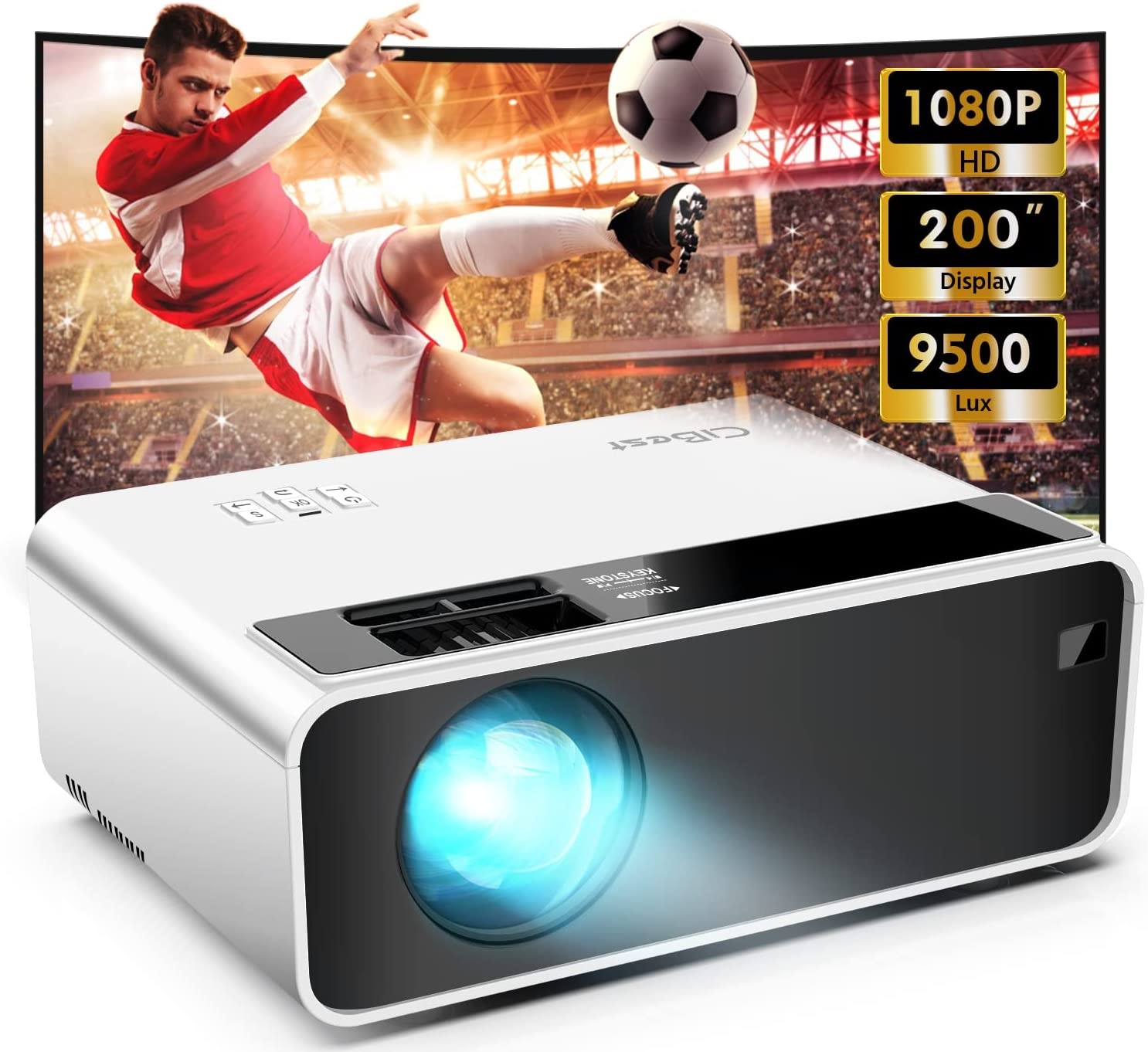 Mini Projector, CiBest Outdoor Projector 1080P Full HD, 2022 Upgraded 9500 LM Portable Projector, Small Home Movie Projector 200" Supported, Compatible with PS4, PC via HDMI, VGA, AV, and USB