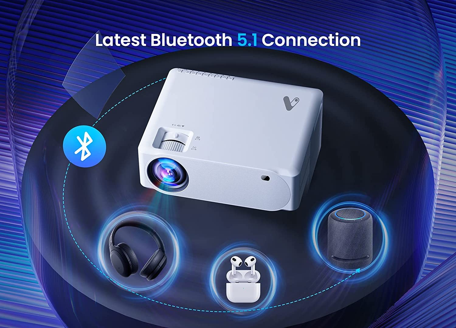 【2022 Upgraded Bluetooth 5.1 & Hi-Fi Speaker】We have upgraded our Bluetooth projector to the up-to-date Bluetooth 5.1 connection and a new minimalist look in 2022. You can easily connect to a Bluetooth speaker, Bluetooth headphones, and other Bluetooth devices, or you can hook up a wired speaker via the 3.5 mm jack as you want. The built-in Hi-Fi speaker allows you to enjoy great stereo surround sound without connecting to Bluetooth or wired speaker.