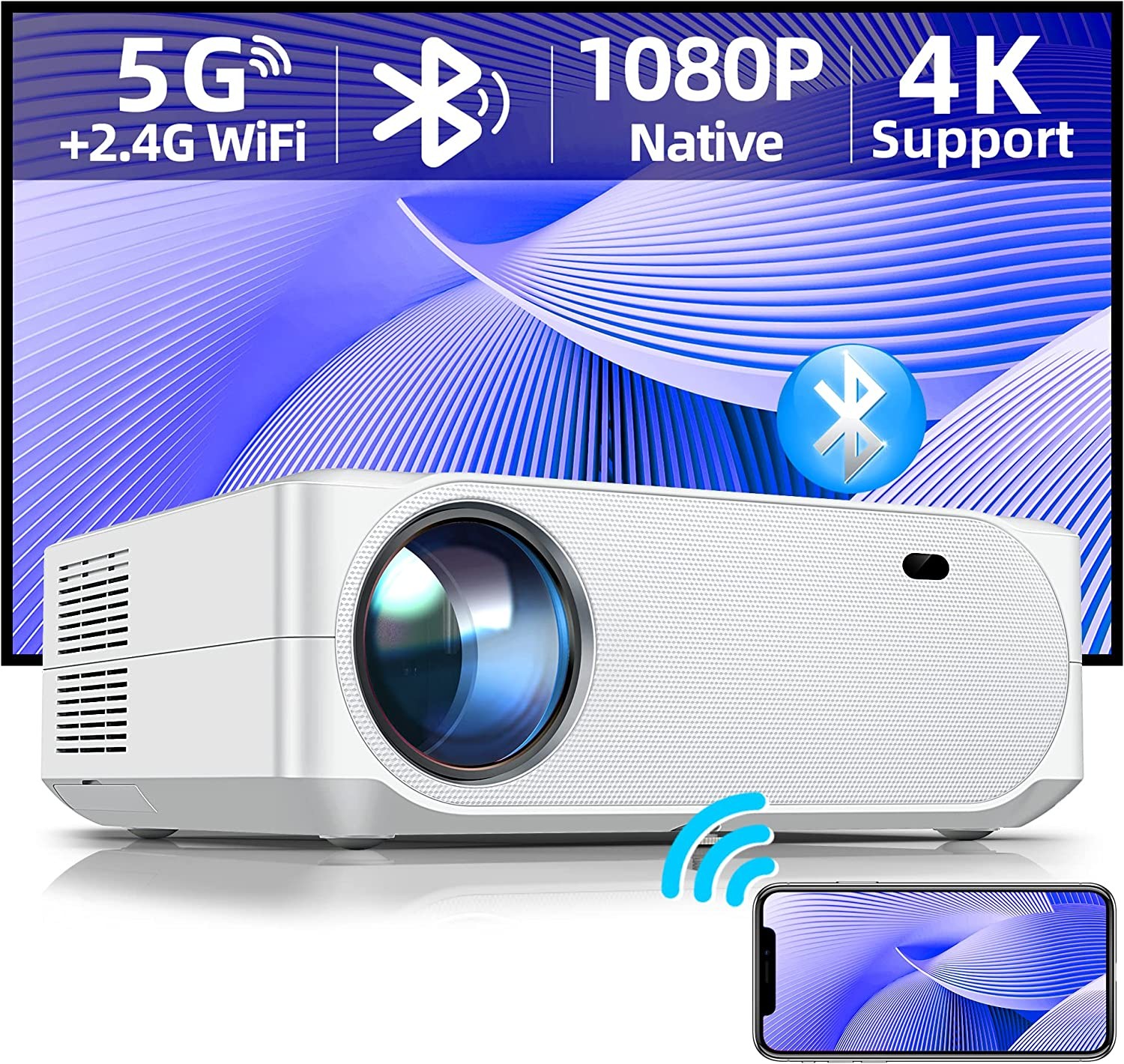 【Latest 5G+2.4G WiFi Fast & Stable Connection】Boasting the latest ultra-fast 5Ghz/2.4Ghz dual-band WiFi technology, our projector with wifi and bluetooth greatly enhances the speed and stability of the wireless connection, enabling you to directly project your favorite content from your iOS/Android smartphone. No extra adapters is needed. NOTE: The copyrighted videos (Netflix, Amazon Prime Video and similar services) CANNOT be wirelessly mirrored or cast.
