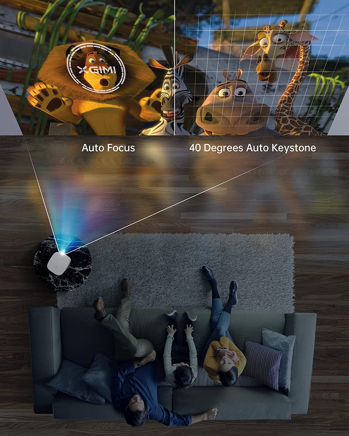 1080p Image with 300 ANSI Lumens: An advanced DLP lamp delivers FHD resolution and 300 ANSI lumens, helping you enjoy vivid colors on a giant 100-inch screen. Built-In Battery: MoGo Pro's strong built-in battery provides at least 2HRS of big-screen entertainment anywhere, anytime. Android Tv: Download apps directly to the projector from Google Play, including YouTube, Prime Video, Hulu, Disney +, HBO Max, and more! Please note that our product does not stream the native Netflix app. Auto Keystone Correction: Autofocus and 40° Auto Keystone Correction ensure a perfect aspect ratio from almost any angle. Harman Kardon Sound: Phenomenal audio powered by two 3W built-in Harman Kardon speakers. You can also wirelessly connect soundbars and Bluetooth headphones