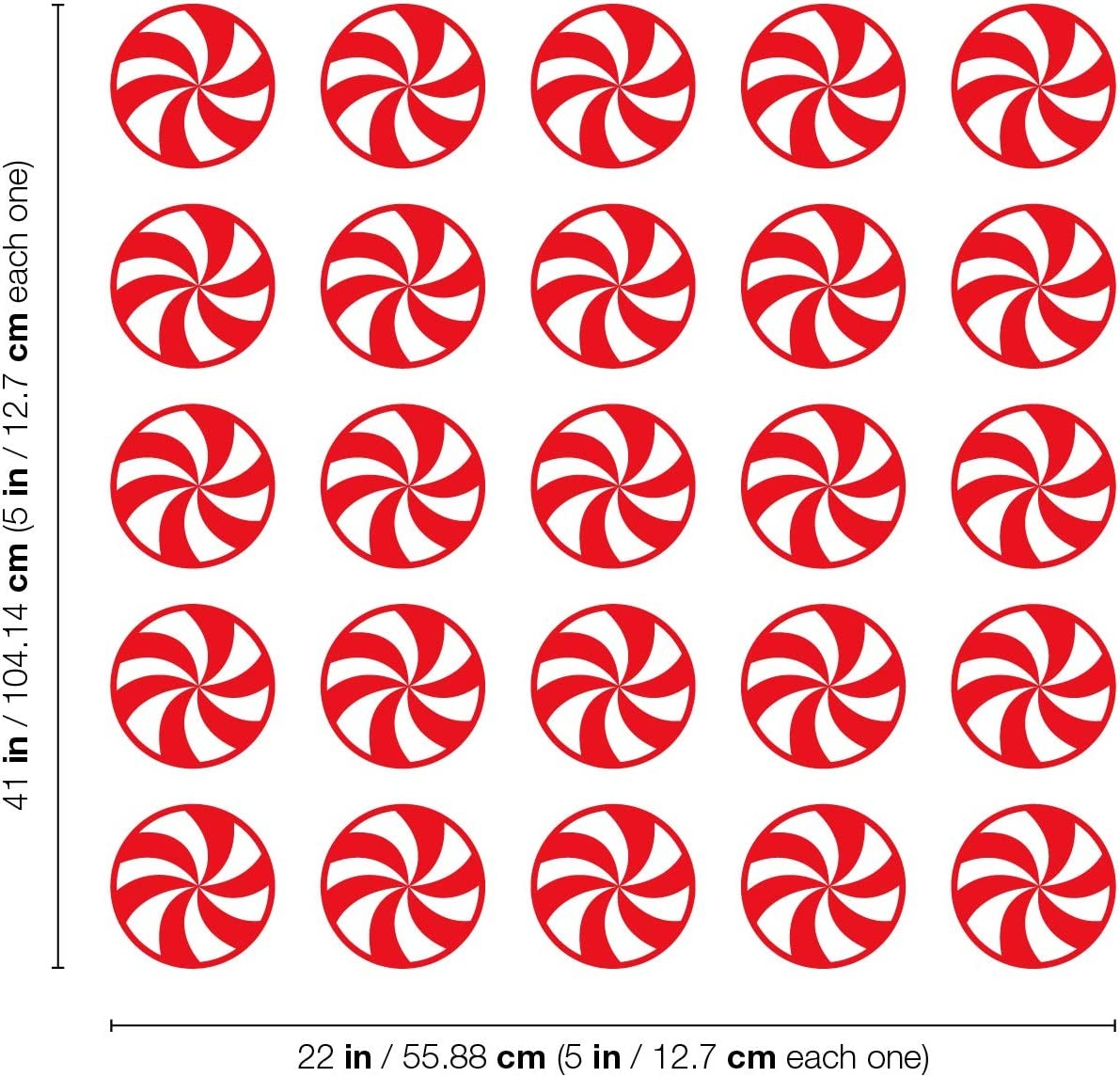 Set of 25 Vinyl Wall Art Decal - Peppermint Candies - from 5" x 5" Each - Trendy Fun Holiday Season Candy Design Sticker for Kids Room Playroom Living Room Storefront School Coffee Shop Decor (Red)