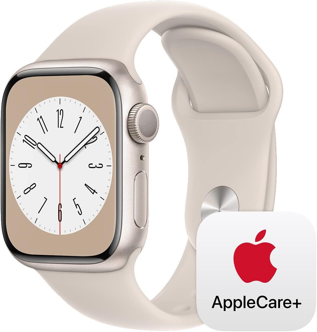 WHY APPLE WATCH SERIES 8 — Your essential companion for a healthy life is now even more powerful. Advanced sensors provide insights to help you better understand your health. New safety features can get you help when you need it. The bright, Always-On Retina display is easy to read, even when your wrist is down. EASILY CUSTOMIZABLE — Available in a range of sizes and materials, with dozens of bands to choose from and watch faces with complications tailored to whatever you’re into. INNOVATIVE SAFETY FEATURES — Crash Detection and Fall Detection can automatically connect you with emergency services in the event of a severe car crash or a hard fall. And Emergency SOS provides urgent assistance with the press of a button. ADVANCED HEALTH FEATURES — Temperature sensing is a breakthrough feature that provides deep insights into women’s health. Keep an eye on your blood oxygen. Take an ECG anytime. Get notifications if you have an irregular rhythm. And see how much time you spent in REM, Core, or Deep sleep with Sleep Stages. Coverage begins on your AppleCare+ purchase date. 24/7 priority access to technical support offers troubleshooting for Apple Watch, watchOS, and Apple-branded Watch apps Express Replacement Service provides a replacement before you return your device Hardware repair coverage, including parts and labor, is available from Apple-certified technicians in-person or by mail