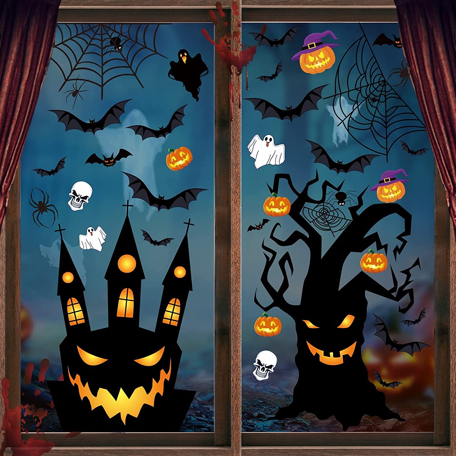 ?SCARY HALLOWEEN WINDOW DECORATIONS: Window decals come with 206 pcs assorted Halloween themed stickers in 8 large sheets, including spiders, webs, scarecrow, pumpkins, dead tree, castle, bats and ghosts. Combined with vibrant orange and gloomy black, Halloween window clings create plenty of spooky scenes, will definitely catch everyone's eye. Get these decals home, add a strong Halloween vibes!