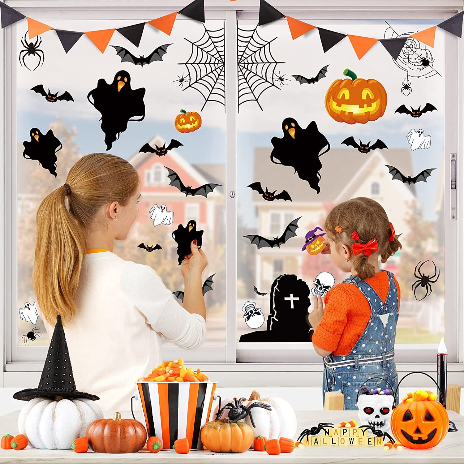 ?PERFECT ADDITION TO HALLOWEEN: Halloween window clings with various spooky elements are perfect for Halloween party favors, haunted house decorations and trick-or-treat night. Suitable for Halloween window decoration, Halloween indoor outdoor decor, home decor, door decor, office, retail store, restaurant decor and etc. Add more horrific effects, creep out all trick-or-treaters this Halloween!