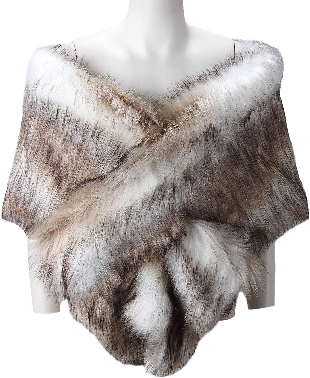 Caracilia Women's Faux Fur Shawl Wraps Stole Cloak Coat Sweater Cape for Evening Party/Bridal/Wedding