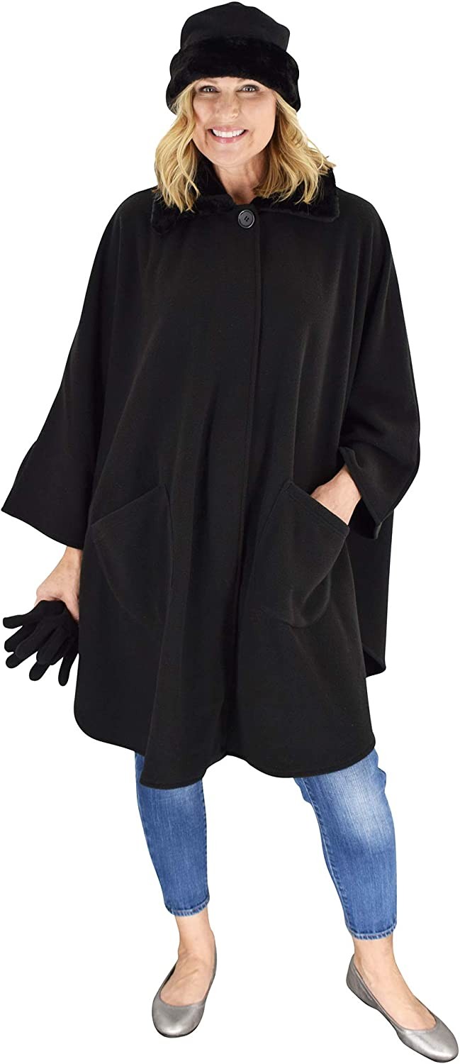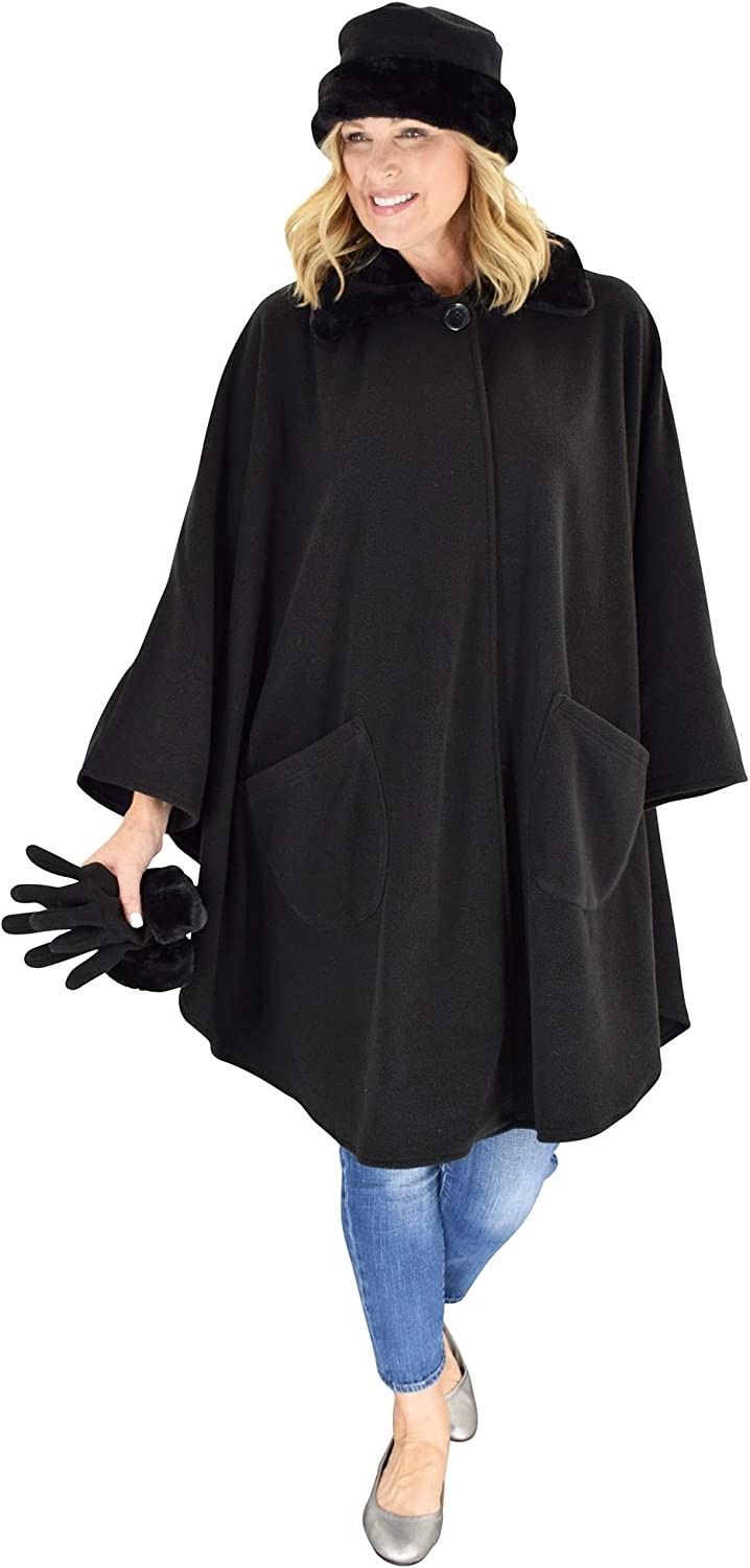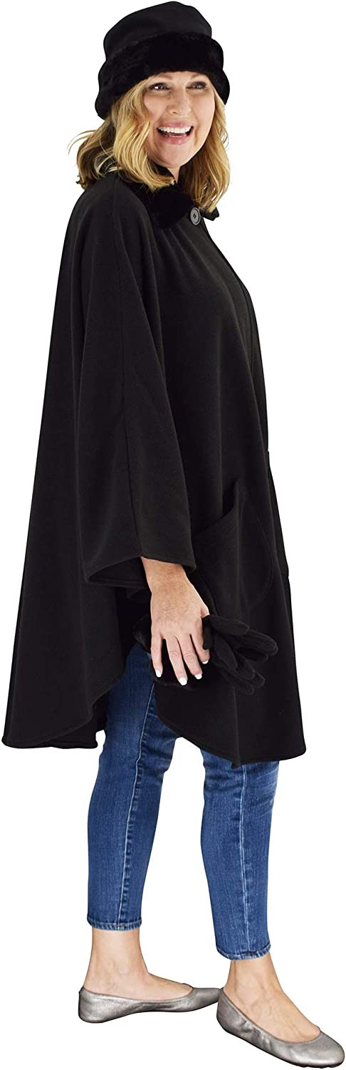 Button closure Hand Wash Only BUNDLE UP WITH STYLE: This poncho set features a cute matching set of gloves and a warm hat - just add pumpkin spice latte. Fuzzy, lightweight, and soft polar fleece means you'll stand out in the cold without having to leave home-style comfort behind. Your best boots or scarf make it a statement piece. YOUR NEW FAVORITE SHAWL: With a decorative button on the collar and two convenient pockets (sufficiently sized for hands and accessories), this gorgeous top is eminently wearable and sure to become the go-to whenever a pashmina, poncho, or cape is called for. SIMPLY BETTER FABRIC: No more itchy wool or drafty knit fabrics. Le Moda's polar fleece wear offers a fantastic combination of comfort in autumn and winter chill, while remaining light enough to fit under a heavy coat as needed. ONE SIZE FITS ALL: No guesswork required. Measures 37" from shoulder to hem and 50" across from shoulder to shoulder. Gloves and hat stretch comfortably to fit standard. 100% Polyester Polar Fleece. Machine washable (cold water recommended). 100% SATISFACTION GUARANTEE FROM LE MODA: We Guarantee You Will Love Your Le Moda Sherpa Trimmed Wrap Set or your Money Back. If for any reason you aren’t happy with your purchase, simply return it to Amazon for a full refund.