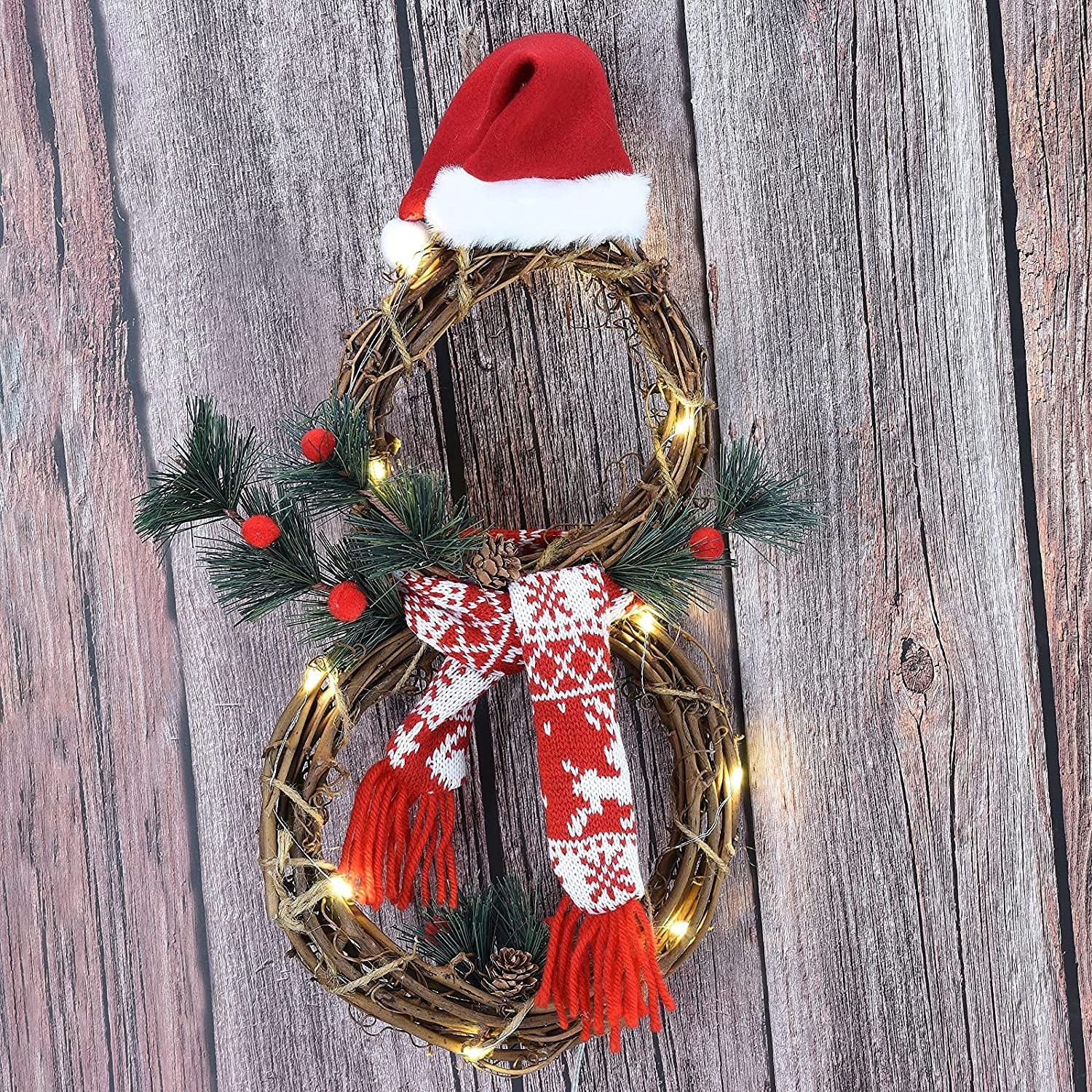 ❄️⛄️【Charming Christmas Decorations】? Not like traditional wreaths are all round, this lovely wreath garland has snowman shape with christmas hat and scarf design. It comes with warm string light decorated. Red Berries, Pine cones, vivid pine branch just like its hands which add joy to your Christmas. Get visitors into the Christmas spirit instantly with these fun and festive Christmas signs. It keeps saying “Merry Christmas, Welcome!” ❄️⛄️【Handcrafted and Delicate Design 】? LED Christmas wreath is made from Rattan and knitting, rattans were processed by high-temperature steam, non-toxic and harmless. With LED light string(not include battery). Christmas Essentials, it will add more holiday atmosphere and bring festive radiance, attracting the sights of neighbors and friends. In the winter night, it glows in the dark, birng your family warmth. Size: 21" in height and 8.3" bottom wide. ❄️⛄️【Add Christmas Atmosphere】? Our Christmas snowman Wreath Hanging Decor is great for the coming Christmas,cute snowman wearing a xmas hat which fill your home with a thick Christmas atmosphere.The perfect way to decorate the doors of your home. Your house derserve a stylish and eye-catching new year scene. All weather-proof and easy to store. You can use it year after year, and store it for the next holiday. ❄️⛄️【Easy To Use】?- No assembly required. Wreath has loops on the back for hanging ease. Our wreaths naturally look wonderful positioned above the mantel and perfect to hang on your front door or in your home as you celebrate the Christmas & holiday season.If you are looking for a wreath that is highly visible from the street and is sure to bring many compliments from your neighbors, this wreath is for you. ❄️⛄️【Multi-scene application】? Christmas door Wreath is perfect on your front door or anywhere inside your home, dress up your front porch/entryway/gardens. Great to decorate home, shop, office and classroom decoration. Ideal for wall, fireplace, shop window, rooms and Christmas tree decoration,make your home the most eye-catching in street. Great Christmas present for your family members, neighbors, friends or colleagues etc., share Festive pleasure and help ring in the holiday.
