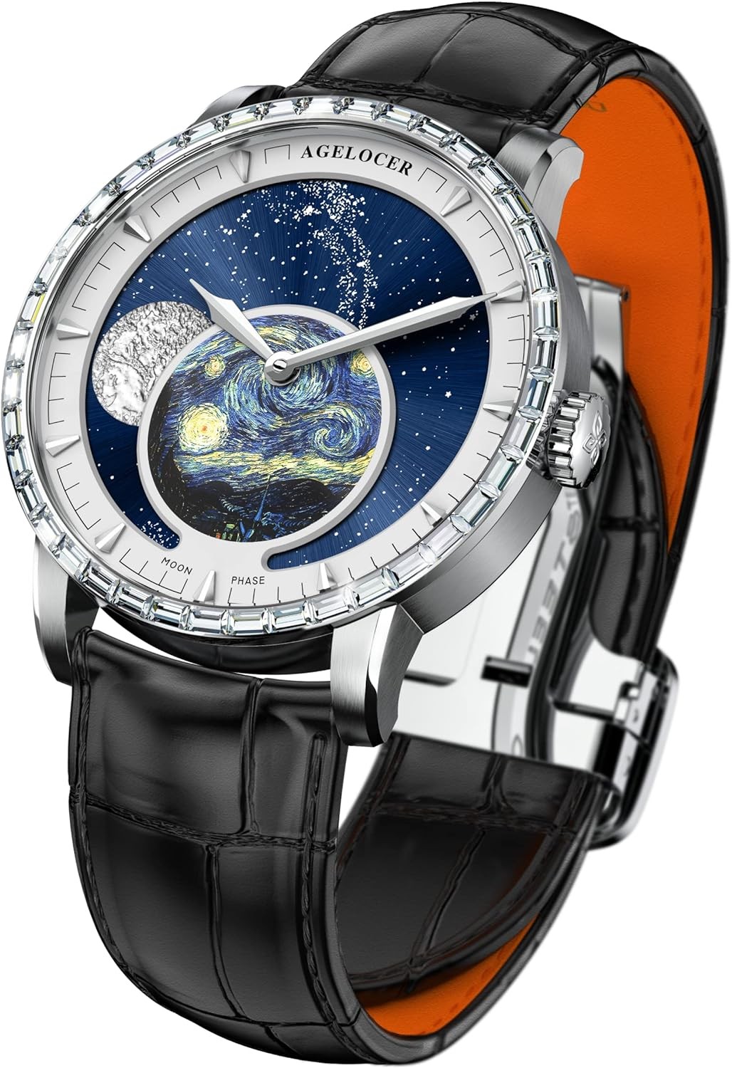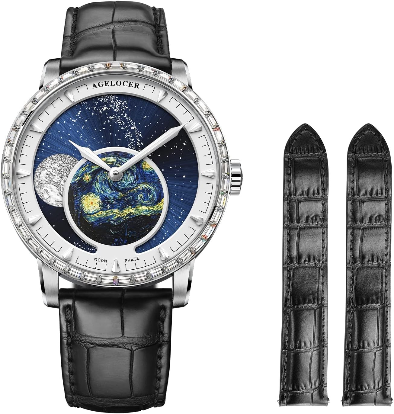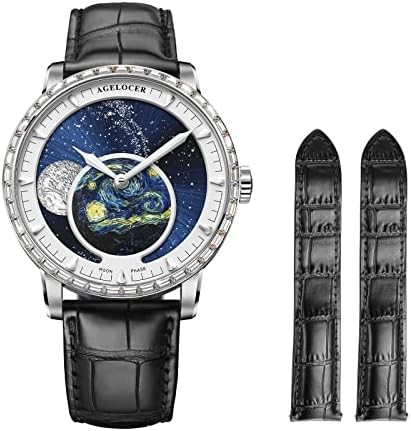 AGELOCER Original Men Watch with 3D Moon Phase Watch Dial, Luxury Automatic Mechanical Watch for Business, Dating, Casual, Comes with Extra Leather Starp
