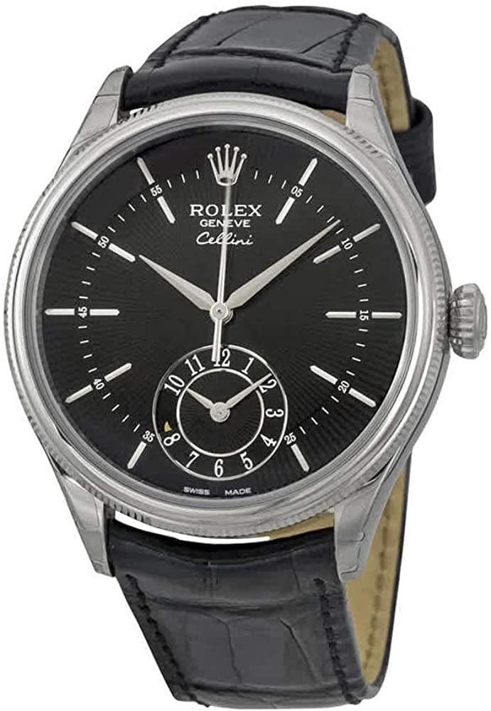 Rolex Cellini Dual Time Black Dial 18kt White Gold Men's Watch 50529BKSBKL