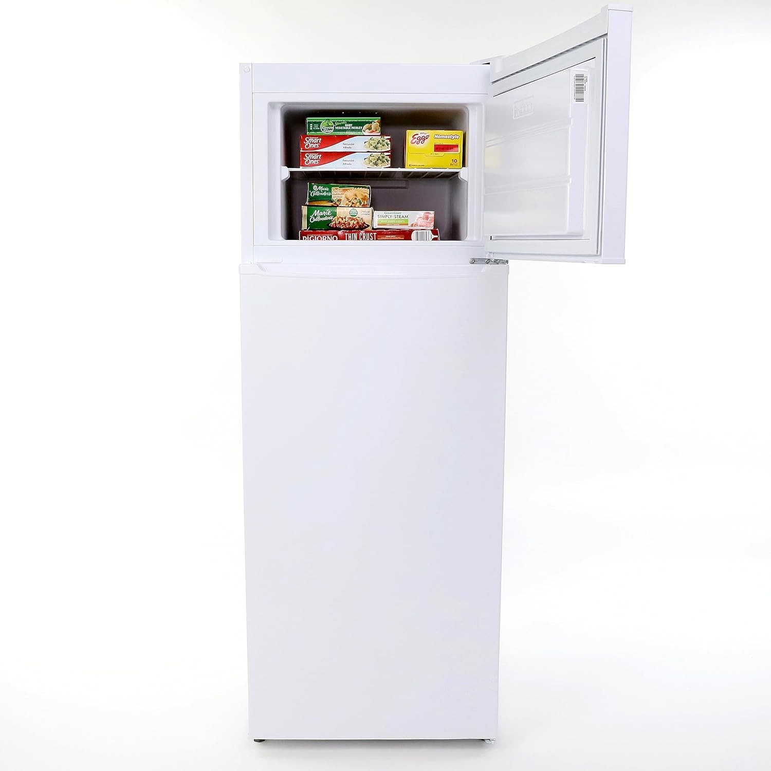 FUNCTIONAL DESIGN: 7.4 Cu.Ft. of refrigerator space is perfect for food, soda, beer, or other beverages with a 1.4 cu.ft. top-mounted freezer section for frozen goods SPACE SAVING: Ideal for apartments, offices, condos and more. 56.75" H x 21.25" W x 22.5" D ADJUSTABLE TEMPERATURE: Full range temperature control VERSATILE FEATURES: Reversible doors, Adjustable glass shelves, crisper drawer with glass cover, adjustable/removable door bins, interior LED light, ice cube tray ENERGY EFFICIENT: Energy Star certified