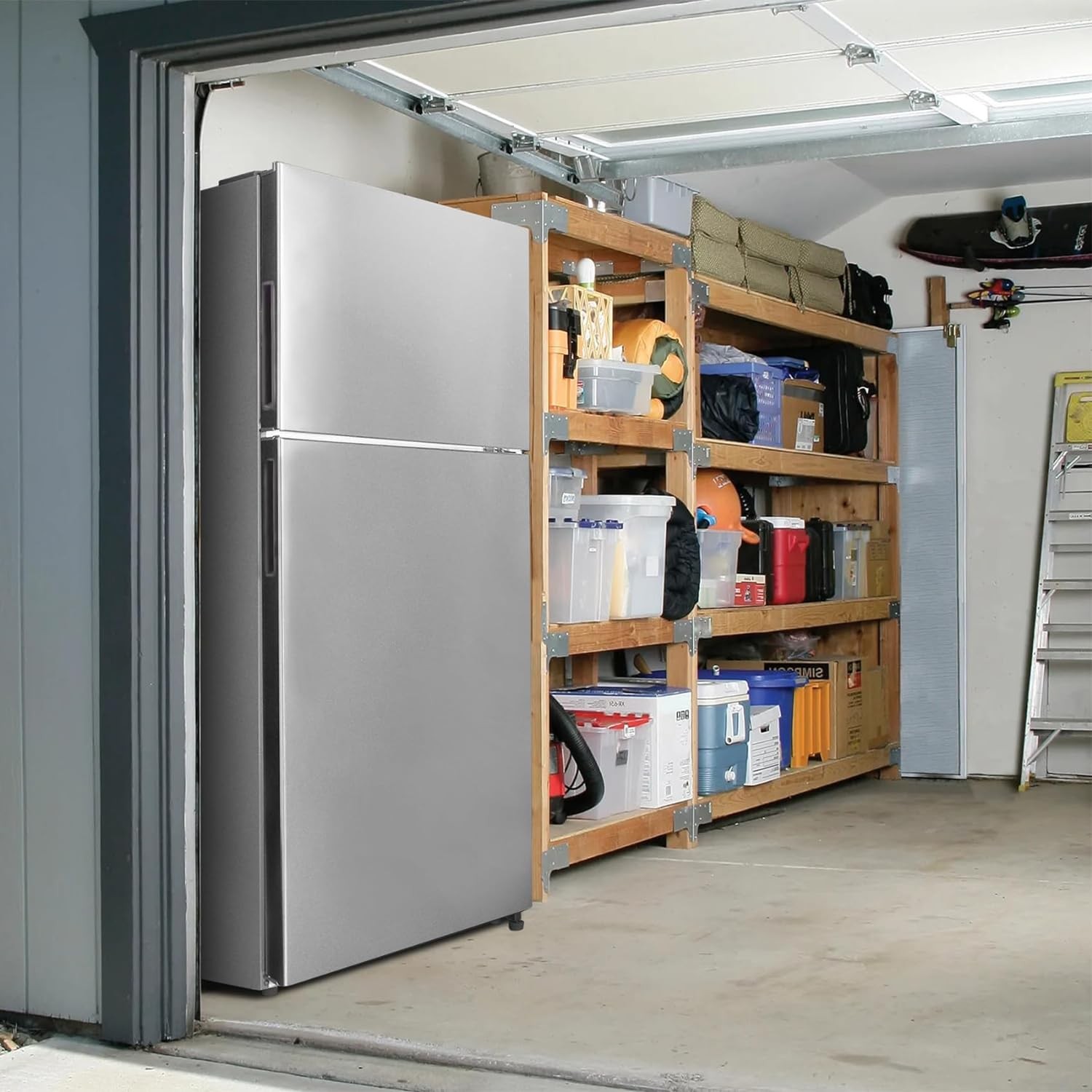 SMETA Refrigerator with Freezer Top 18 Cu. Ft Garage Refrigerators 30" Top Mount Full Size Stainless Steel for Kitchen Fridge, Frost Free Double Door Upright Freezer Led Light, Garage Ready