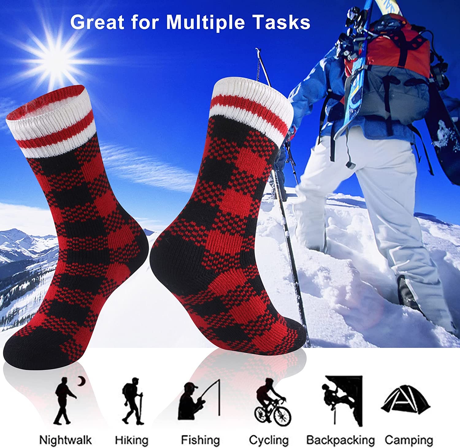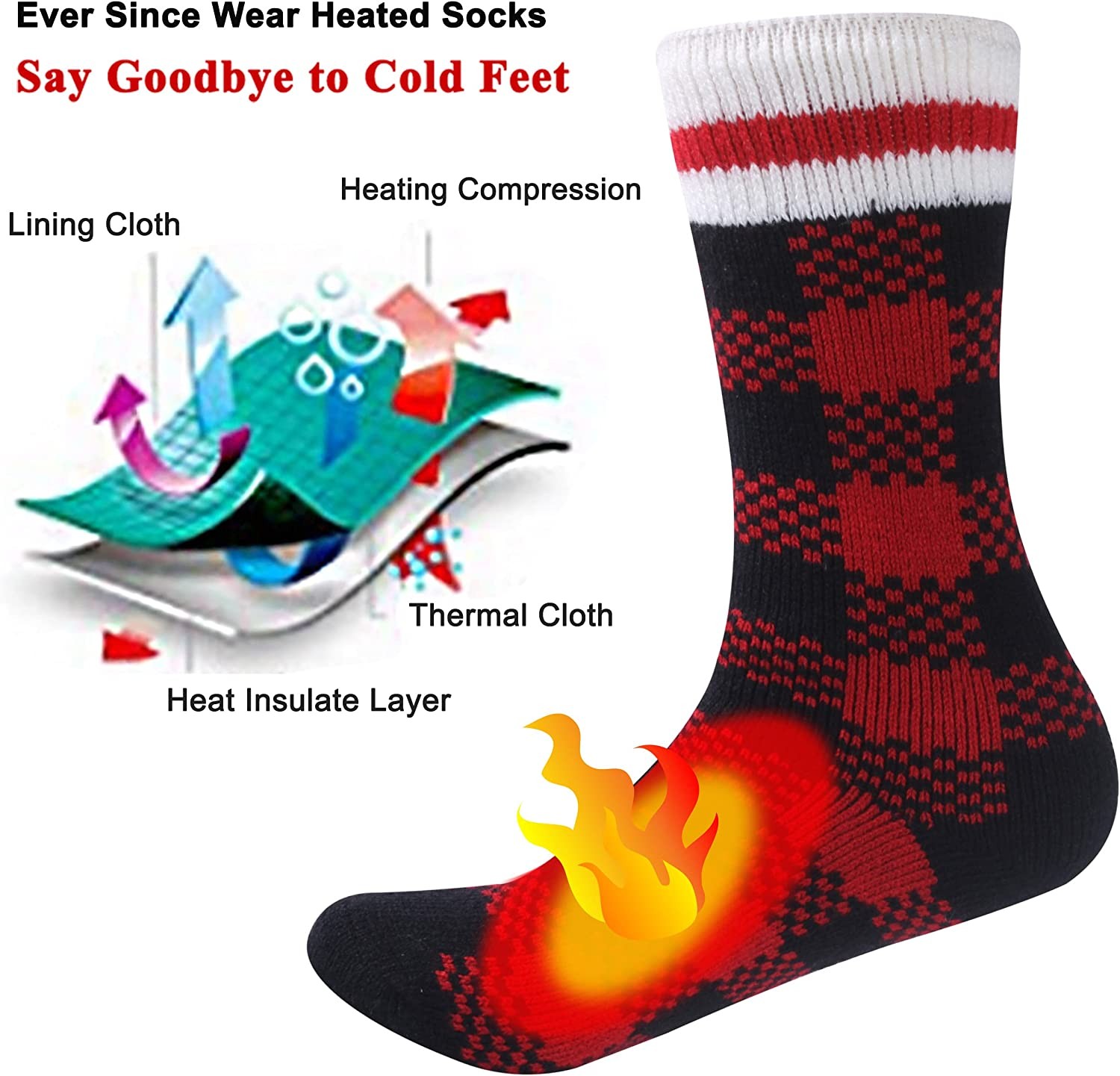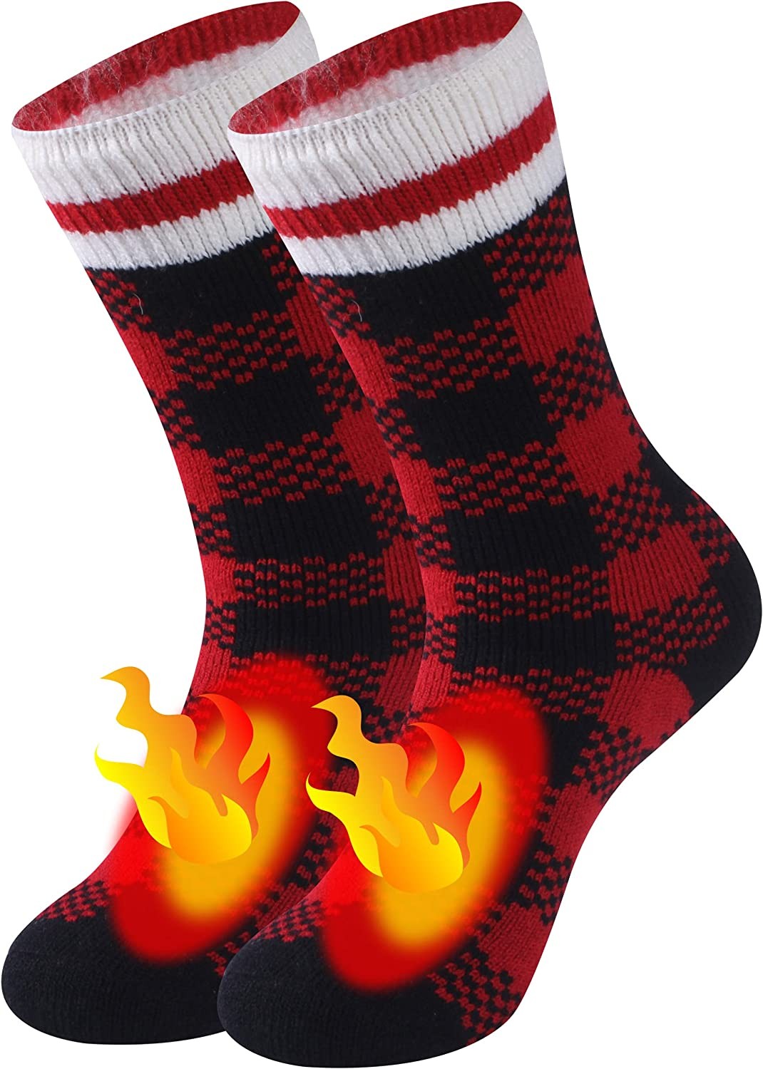 KEEP YOUR FEET WARM: Extra warm for the coldest winter weather. Heavily brushed fuzzy warm lining make these insulated thermal socks provide soft and comfort for feet during extended outdoor trail cold weather gear - hiking, skiing, working, or indoor gear- fuzzy sleeping socks, cozy slipper socks. Thick thermal yarn keeps feet warmer for longer. These warmest soft thick thermal socks for cold feet come in Crew length, creates vacuum of warm air next to the skin. SNUGLY SOFT AND COMFORTABLE: Long pile cushioning, these Heated Thermal Socks will keep your feet warm, toasty, fully supported & comfortable. Ribbed stay-up top keeps thermal socks from sliding down; Smooth toe seam improves comfort. Reinforced heel and toe with deep thick thermal yarn enhance durability.Perfect as work gear in cold weather; Great for outdoor athletic camping, skating. AMAZING WARM EVEN IN EXTREME TEMPERATURES: The special high-tech fibers with a high level of heat insulation would enclose more of your own body heat. The Cold Weather Insulated Thermal Socks are specially designed to keep your feet warm even when the temperature outside is way too low. The Hot Warm Thermal Socks are ideal for those who work outdoors or enjoy snow boarding, climbing and camping in the mountains during the cold temperature. EXCELLENT GIFT CHOICE: Choose your favorite color and design (or choose them all!) and be ready for this holiday season. We have ten colors they always match with your pants and shoes! Three street Comfort Warm Hot Heated Thermal Socks are perfect as present for home wear and outdoor activities. You also could choose for your girlfriend, boyfriend, daughter, son, wife husband as Thanksgiving gifts, birthdays gifts, Christmas gifts and so on. Best choice for Black Friday, Cyber Monday. SERVICE GUARANTEE: We pride ourselves on the integrity and quality of our products, and firmly stand behind all that we sell. All Three street’s items are with 100% money back guarantee. If our Heavy Extreme Cold Weather Boot Thermal Socks do not perform as you expected, please do not hesitate to contact us so that we can deliver a satisfactory solution asap!