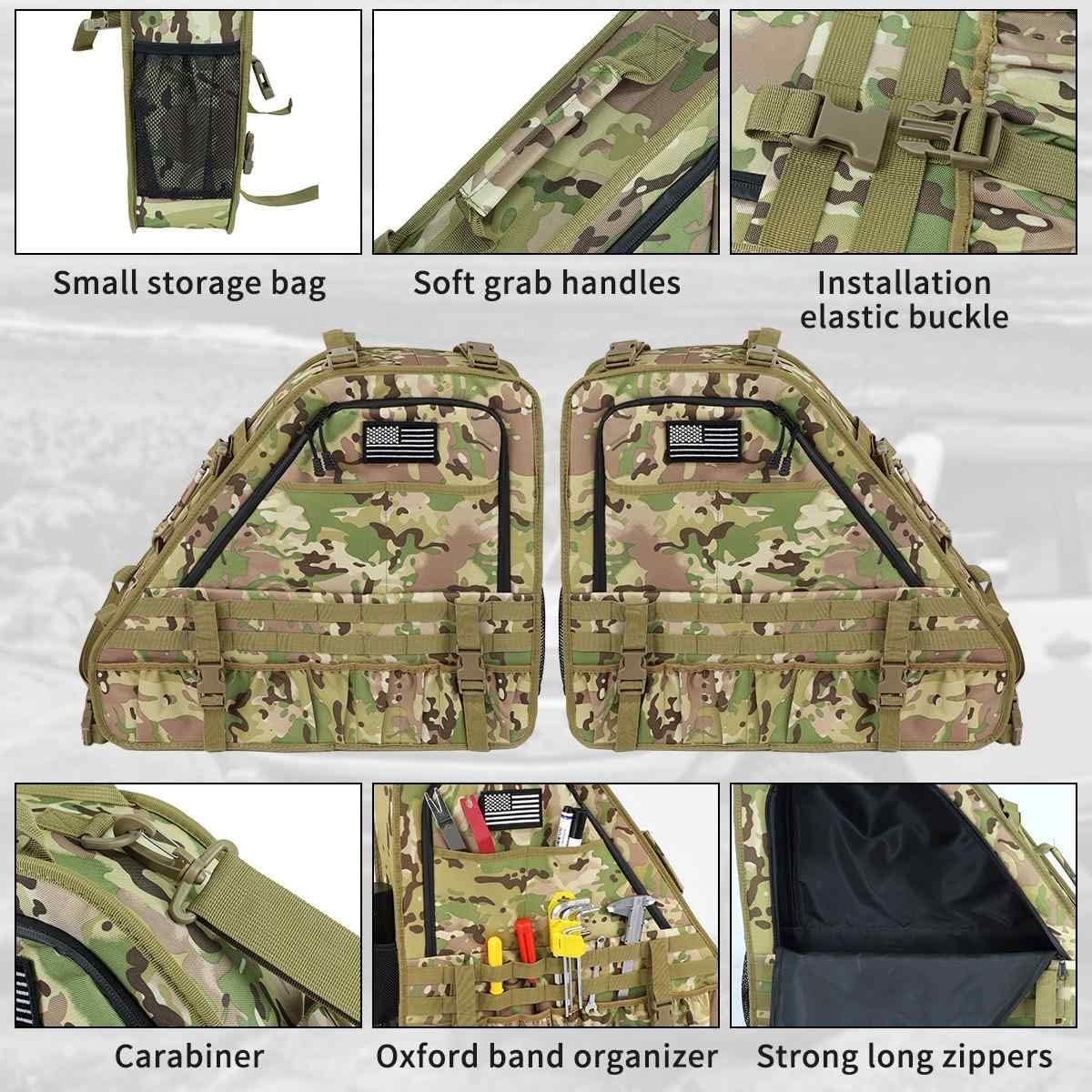 Easy to install, The installation is very simple, without drilling or modification, and will not damage your car. It is only necessary to attach the storage bag to the roll over bar on the vehicle via the quick release buckle. Easy to move, put on and take off, and get items.