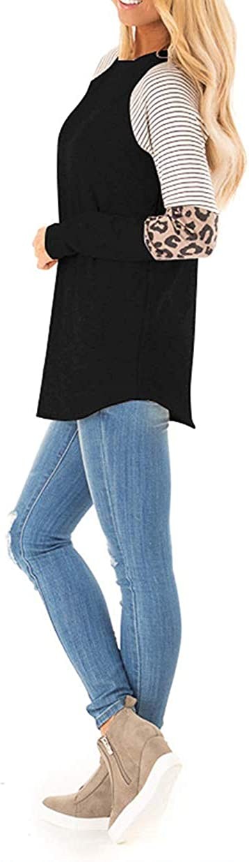 Polyester,Cotton Pull On closure Machine wash or hand wash Material:65% Polyester+35% Cotton,The Cute Shirts is Soft,Lightweight,Stretchy,Relaxed and Comfortable to Wear.It is the most popular product on the market and is not easy to pilling. Features:Color Block Shirts,Leopard print stitching long sleeves,Stripe,Long Sleeve Tunic,Round Neck.This causal loose Tops Great to wear with Skinny Jeans,Leggings,Boots or Heels,Featured with stripes and leopard prints to create a sense of fashion. Occasion:Suit for casual, travel, home, Perfect for your daily wear, outdoor, work and parties,any occasion is perfect in Spring, Fall and Winter. Attention:As different computer display colors are different, the color of the actual products may be slightly different from the images Thank you for your understanding. 100% SATISFACTION GUARANTEE: We've got you covered! comfortably constructed & backed by a 30 day ‘love it or your money back guarantee. Either you LOVE the product or you are entitled to a full refund.