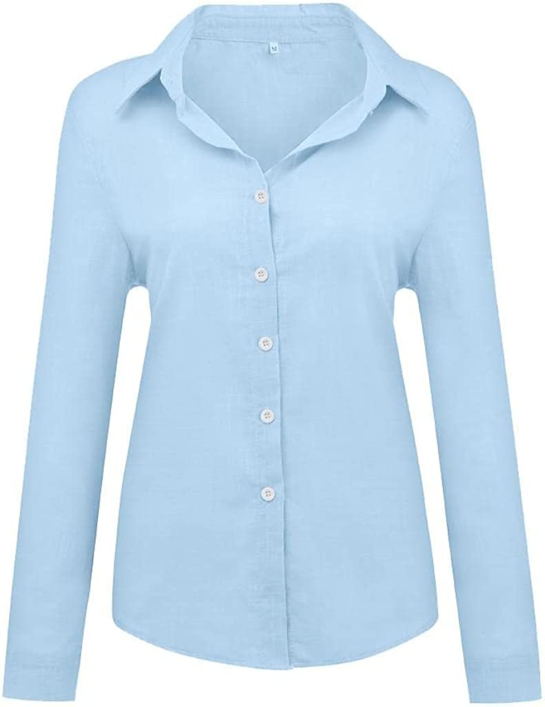 Blouses Shirts for Women Fashion 2022,Casual Long Sleeve Button Down Shirts Tops Plain Tees Dressy T Shirts A