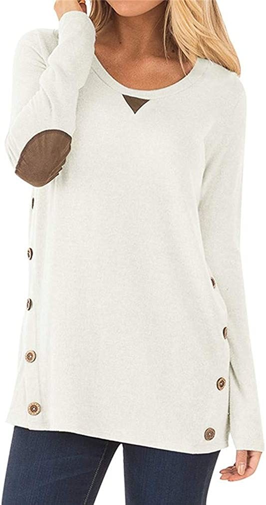 Polyester,Cotton,Spandex Button closure Machine wash or hand wash Material:60% Cotton+35% Polyester+5% Spandex.lightweight, super soft and stretch fabric. Features:Round neck,Elbow patch,Long Sleeve with Faux Suede, Loose Top,Buttons on both sides.Beautiful long sleeve top for the women. Occasions and collocation : Daily Wear,Vacation.Casual style makes it perfect fit for pairing with jeans,leggings, yoga pants, casual trousers, sweater chain, scarf, necklace, boots, jacket or coats and soon. Attention:Machine wash separately or hand wash.As different computer display colors are different, the color of the actual products may be slightly different from the images Thank you for your understanding.