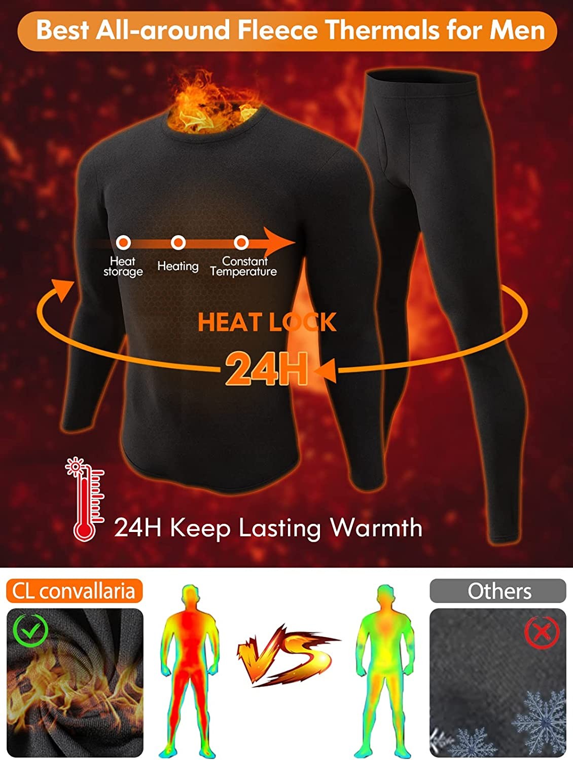 ?[Moisture-wicking & Odor-resistant]: Moisture wicking is important when selecting thermal underwear for men because the worst feeling in the cold winter weather is the clammy, cold sweat that happens, which leads to areas of your body feeling the cold more acutely. While our fleece thermal top and bottom set will wick away moisture fast and absorbing odor, keep you dry and warm and smart odor control. You will enjoy all-day comfortable and confident!