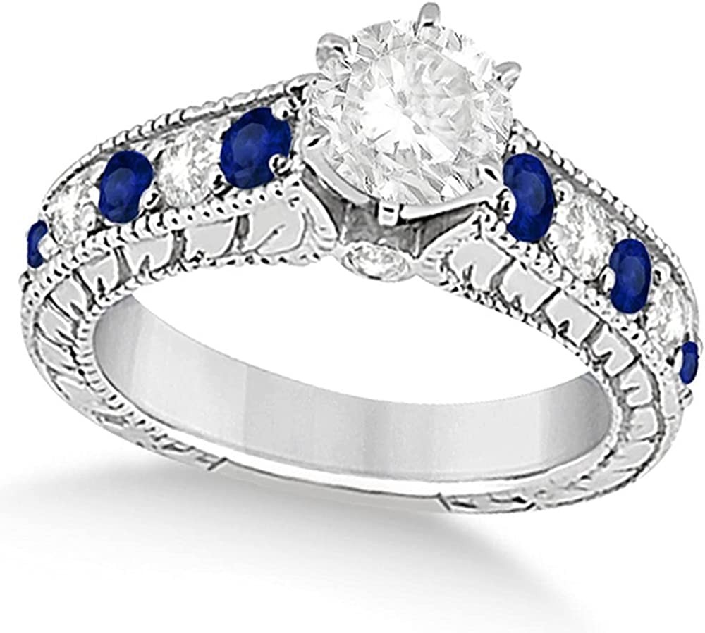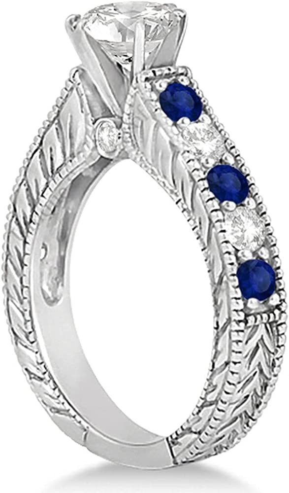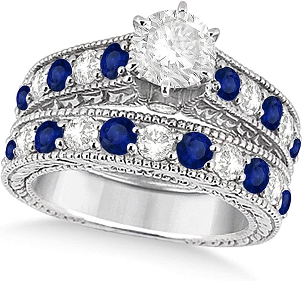 Women's Antique Diamond and Blue Sapphire Bridal Ring Set in Platinum (3.87ct)