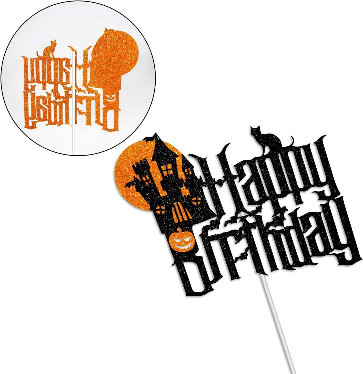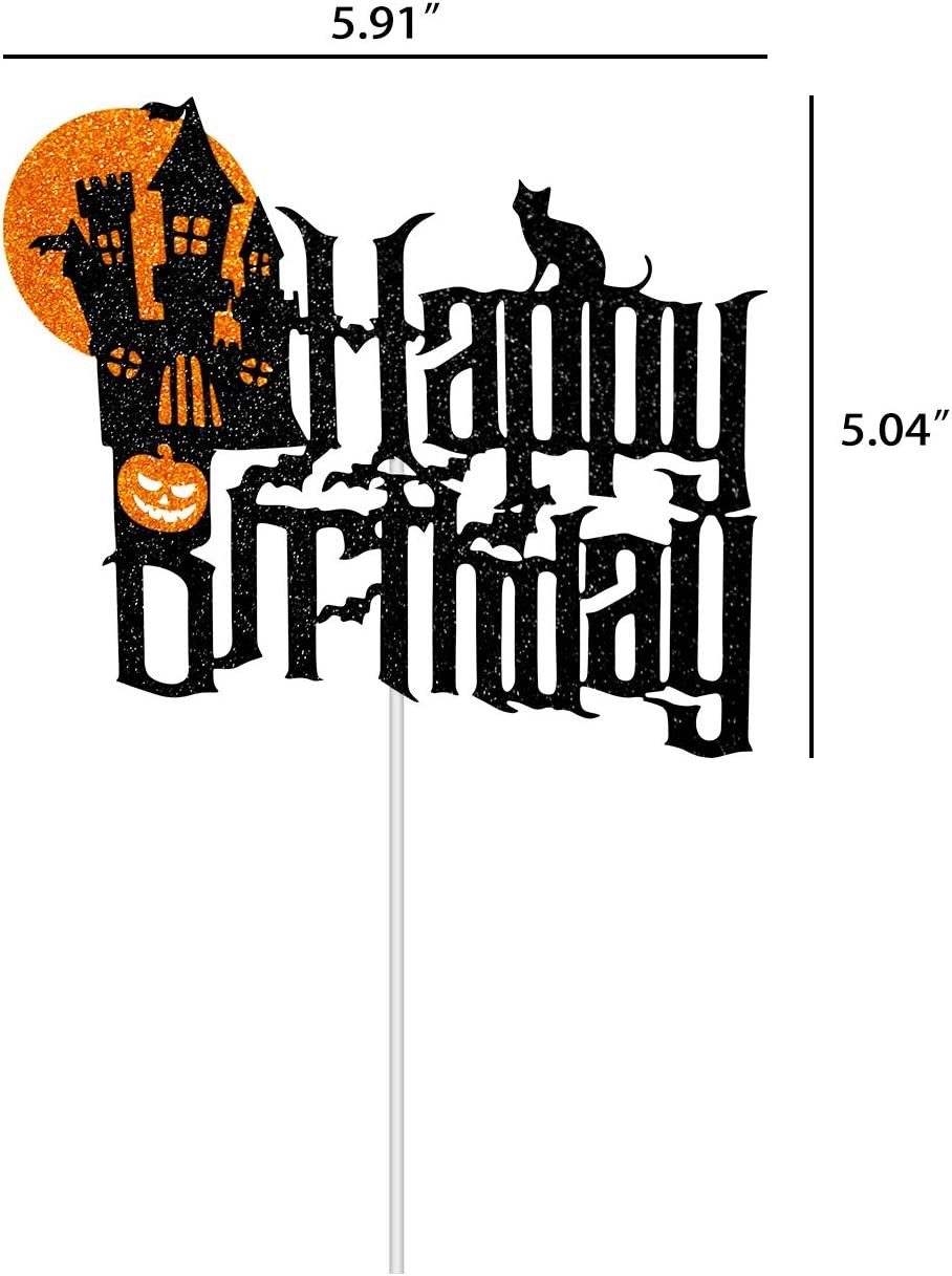 SIZE - Topper size 5.91 x 8.9 inches,Suitable for 6 - 12 inches wide cake, you can adjust the inserting depth of it to adjust the height of cake topper. What you will get - 1Pcs Black Glittery Happy Birthday Cake Topper. These Cake Topper is The Perfect Decoration Welcome your friends to your Halloween Theme Birthday Party. MATERIALS - Made of High Quality Glittery Paper Material, adorable designs with good cutting process,you can use them safely. Not DIY, very convenient. PRE-ASSEMBLED - Glitter halloween cake topper is pre-assembled, NO DIY! Opening package directly and decorating your baby kids halloween themed cake, make your cute cake looks more delicious. Suitable for many occasions: Kids birthday party, Baby shower, Anniversaries, Festival, Theme party, Advertising balloon and so on baby shower, perfect for decorating cupcake cake dessert or other pastry.