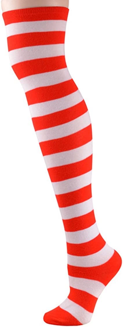 Material:Cotton + Polyester Add some color to your wardrobe with a pair of fashionably cute and sexy thigh-high striped stockings Long stretchy thigh highs offer the comfort and warmth your legs expect from your hosiery while being light and breathable Hand or machine wash It can be as Clown Socks,Over Knee Stocking Socks,Tube Socks,Stripes Team Soccer Socks,suitable for many occasions
