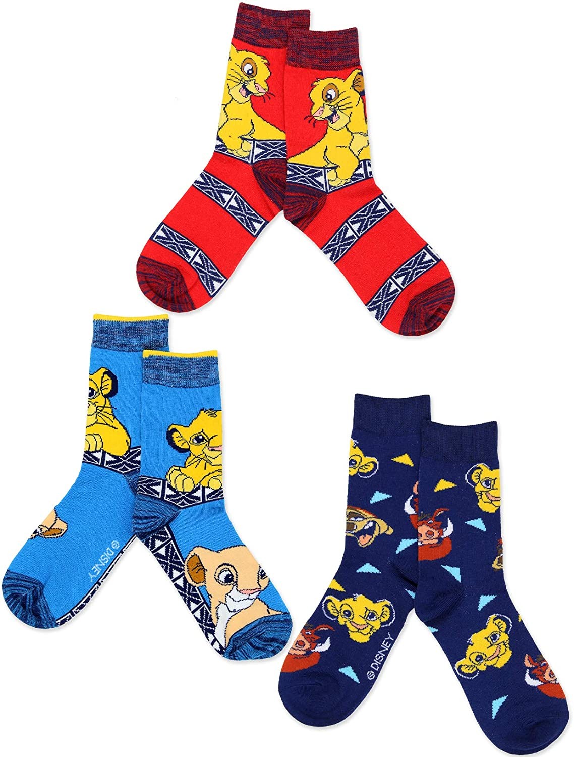 GREAT VALUE - These teen and women's Lion King sock sets are a great value. These crew style sock sets feature a variety of colors. They contain ribbed-knit cuffs and reinforced heels and toes. Pick a different color or character for each day! These socks are comfortable, fun, and affordable! SIZING - These awesome Lion King socks come in women's sock size Large. Sock size Large (9-11) fits shoe size 4 M US Big Kid -10 M US Women's (4 M US Big Kid - 8.5 M US Men's). FEATURING YOUR FAVORITE LION KING CHARACTERS - These adorable socks are sure to bring a smile to your face! With three pairs of socks in each set you can choose a different character each day! These socks feature Lion King characters: Simba, Pumbba, Timon, and Nala! It's perfect for any fan of Disney's The Lion King movie! THE PERFECT GIFT! - This Disney Lion King sock set makes the perfect gift for Easter, a birthday or Christmas! Why? They are comfortable, fun, and very affordable. Get your own pair, or buy one for a friend! These officially licensed Disney socks add some fun to any outfit! PRODUCT CARE - Caring for this socks set is easy. Just wash them in cold water. These socks are imported.