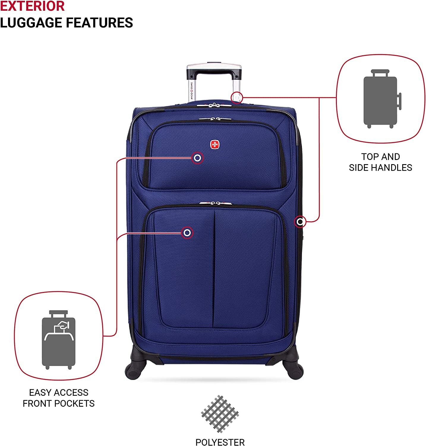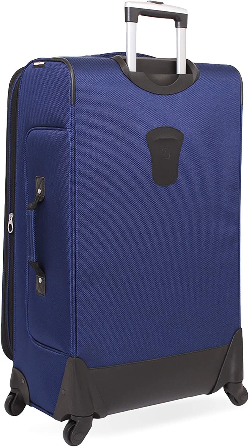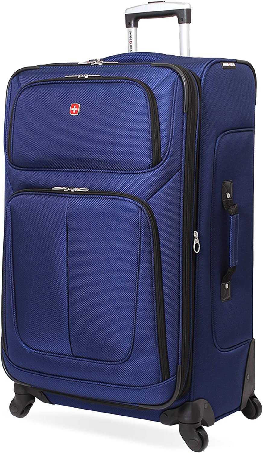 Rolling Suitcase: Get through a crowded airport or down narrow airplane isles easily with this stylish carry-on luggage with 360-degree multi-directional spinner wheels and a locking retractable push/pull handle Multiple Front Panel Pockets: Featuring front pockets with a built-in ID tag, this ergonomically expandable luggage measures 30 x 18.5 x 12.5 inches including wheels and handles; packing dimensions are 28.5 x 17.25 x 12.5 inches Secure and Durable: Expandable travel case gives you ample parking space and made from a durable, scuff-resistant polyester fabric with fully lined interior; also features adjustable tie-down straps for securing garments in place Effortless Organization: This luggage bag maximizes packing efficiency with a removable zippered wet bag, large mesh lid pocket, and packing pocket for holding small items and accessories Convenient Side Handles: With reinforced padded top handle with an integrated side and bottom handle, this roller suitcase makes lifting and carrying your luggage easy