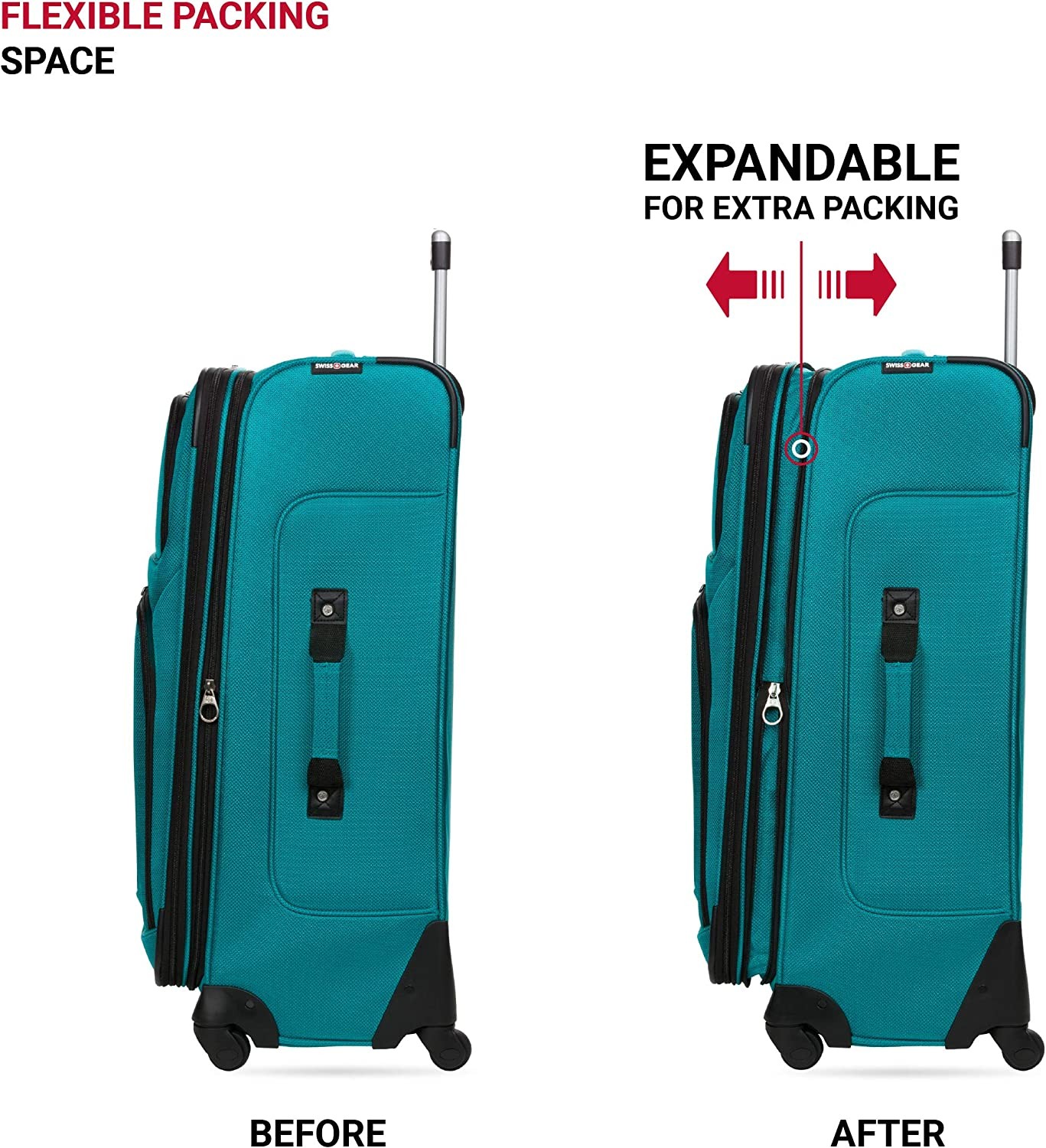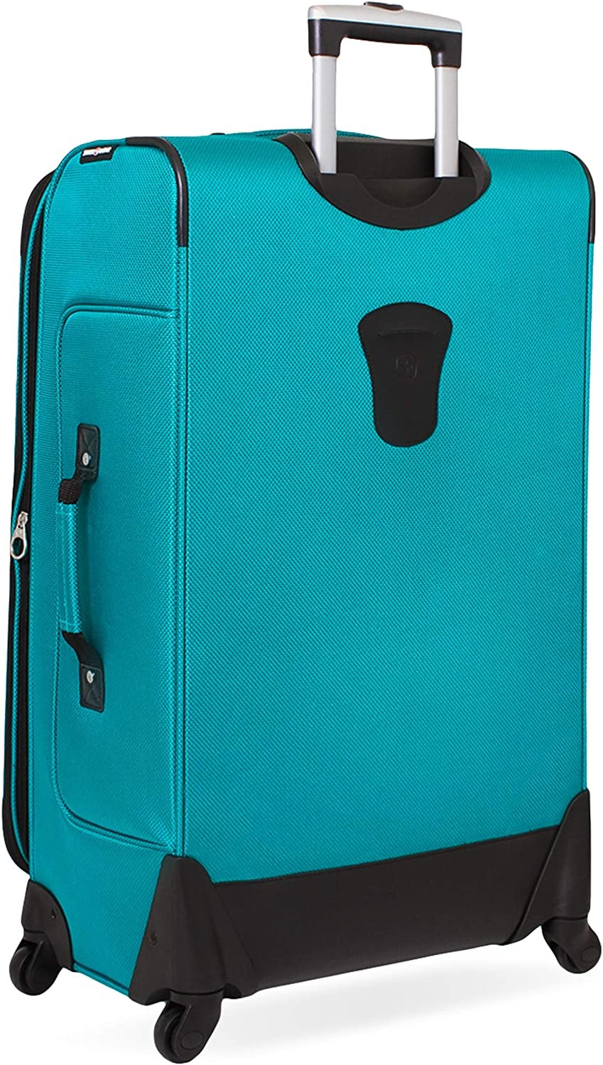 Rolling Suitcase: Get through a crowded airport easily with this stylish check-in luggage with 360-degree multi-directional spinner wheels and a locking retractable push/pull handle Multiple Front Panel Pockets: Featuring front pockets with a built-in ID tag, this ergonomically expandable luggage measures 30 x 18.5 x 12.5 inches including wheels and handles; packing dimensions are 28.5 x 17.25 x 12.5 inches Secure and Durable: Expandable travel case gives you ample parking space and made from a durable, scuff-resistant polyester fabric with fully lined interior; also features adjustable tie-down straps for securing garments in place Effortless Organization: This luggage bag maximizes packing efficiency with a removable zippered wet bag, large mesh lid pocket, and packing pocket for holding small items and accessories Convenient Side Handles: With reinforced padded top handle with an integrated side and bottom handle, this roller suitcase makes lifting and carrying your luggage easy