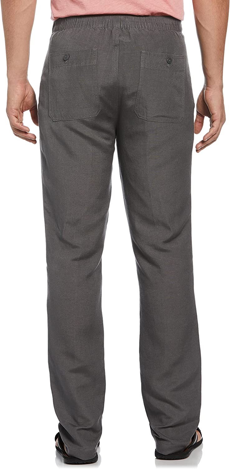 TOTAL COMFORT AND STYLE: Look and feel your best in these trousers for men. The pants feature our classic relaxed fit with a roomier leg. Two quarter slant front pockets and two button-through back pockets let you keep essentials closeby. BREATHABLE: These casual men's pants consists of a blend of 55% linen and 45% viscose, creating a lightweight, breathable fabric that will keep you cool on warm weather days. ELASTIC WAISTBAND: These slacks for men feature an elastic waistband with a drawstring. This allows you to adjust the waist tightness to your liking, helping to keep you feeling comfortable all day long. DURABLE: Plain weave fabrication creates a tightly woven pattern for extra durability, so you can get the most out of these casual men's pants that are sure to become a favorite. EXTENDED SIZES: These men's pants are made for style and comfort with a range of available sizes from regular to big and tall.