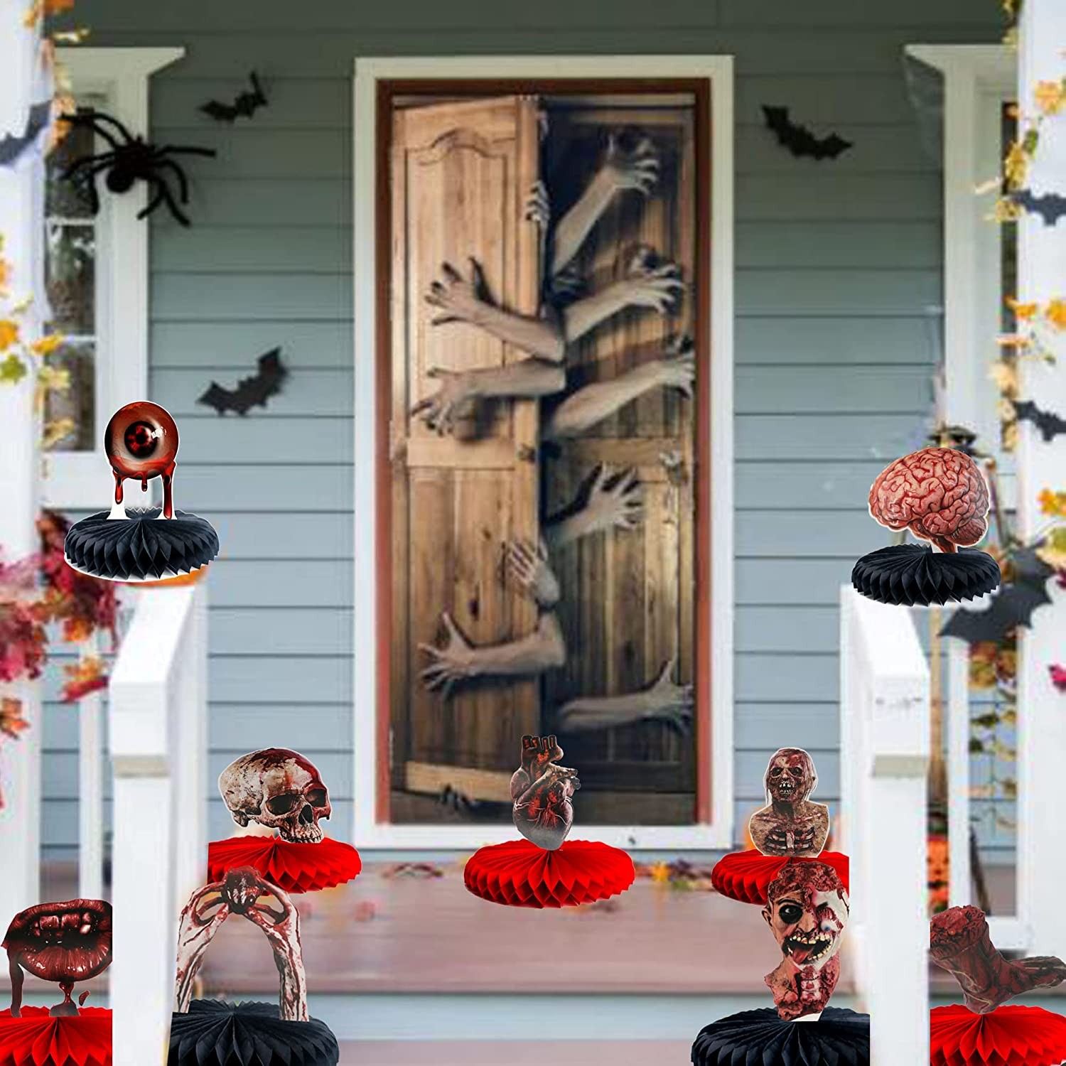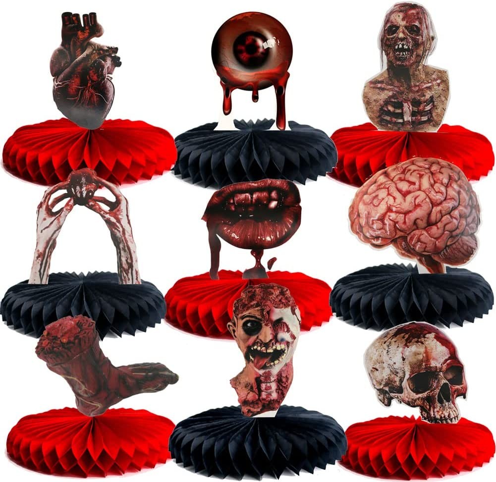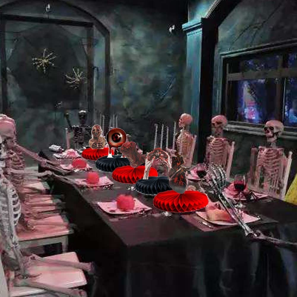 Halloween Honeycomb Table Decor Made Of Paper, 9 Set=4 Black Honeycomb,5 Red Honeycomb, 9 Differrent Pattern Card Tombstone Skeleton Ghost Element Double Side Printed. Easy To Assemble,1. Tear Off The Adhensive Of One Honeycomb,2. Stick The Decoration Card On The Adhensive 3. Pick Another Honeycomb And Tear Off The Adhensive And Stick It On The Card. Halloween Horror Honeycomb Decor Is Good For Halloween Indoor Decorate, Haunted House Decorate,Room Escape And Other Horror Place Etc Diffuse Deep Horrifying Atmosphere To Others Halloween Decorations Indoor Honeycomb Table Decor Also A Good Photo Props, It Is Easy Use, Put It Anywhere You Want. 100% MONEY BACK GARANTEE, If You Have Any Problems, Please Feel Free To Let Us Know. Your Smile Is What We Always Persue