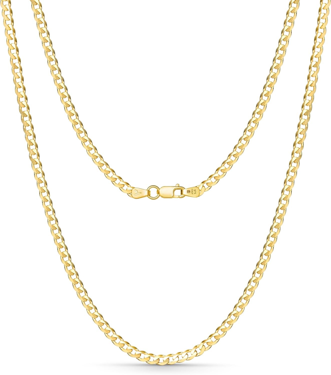 We offer this curb chain in 4 lengths: 16 inch gold necklace, 18 inch gold necklace, 20 inch gold necklace and a 24 inch gold necklace. This offers versatility in styling. Whether worn alone as a statement piece or layered with other necklaces for a trendy look, this mens gold chain adds a touch of glamour to any occasion, from formal events to casual outings.
