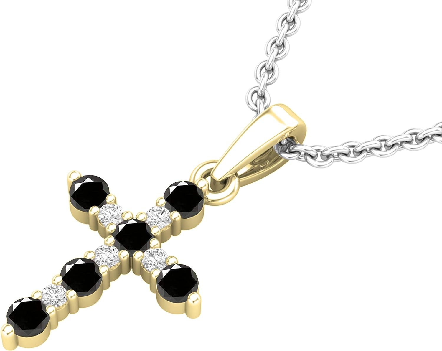 Dazzlingrock Collection Round Gemstone & White Diamond Ladies Cross Pendant (Silver Chain Included), 18K Gold