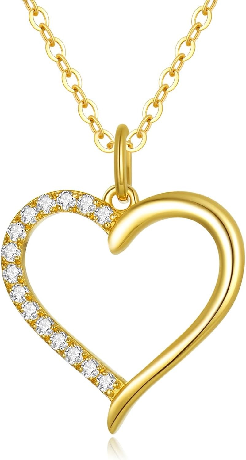 FENCCI 14K Gold Heart Necklace for Women, Gold Heart Pendant Necklace Classic Fine Jewelry Anniversary Birthday Christmas Gifts for Women Girls Mom Wife Girlfriend Her, 16"+2"