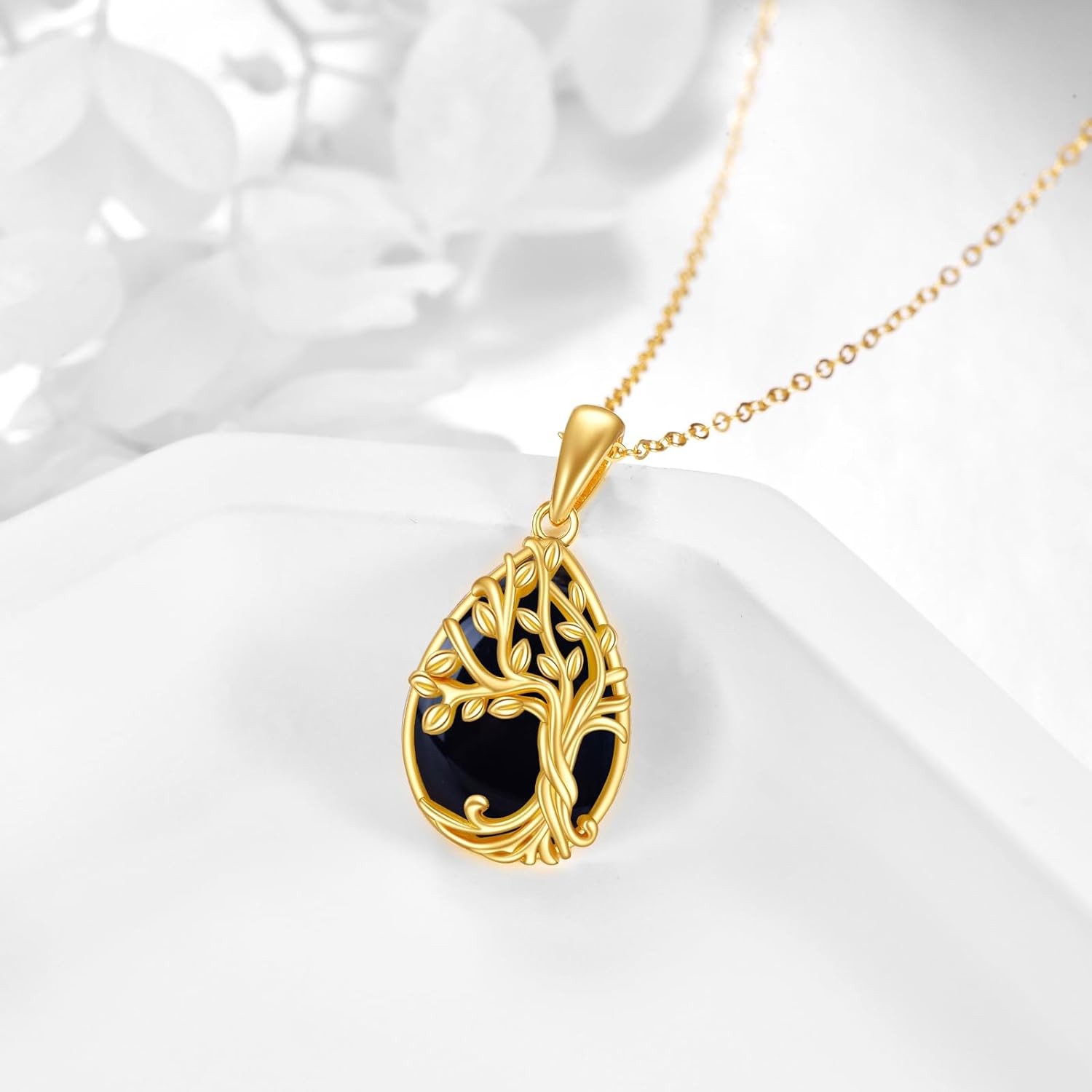 ELFRONT 14k Gold Tree of Life/Music Note/Sun Moon/Compass Necklace Tree of Life Jewelry Gifts for Women Girls