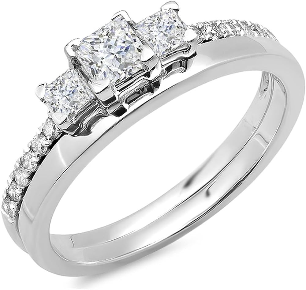 This lovely diamond engagement Bridal Ring Set feature 0.85 ct white diamonds in 3-stone setting. All diamonds are sparkling and 100% natural. All our products with FREE gift box and 100% Satisfaction guarantee. SKU # K1920