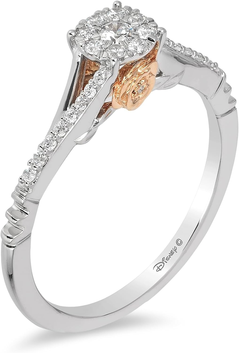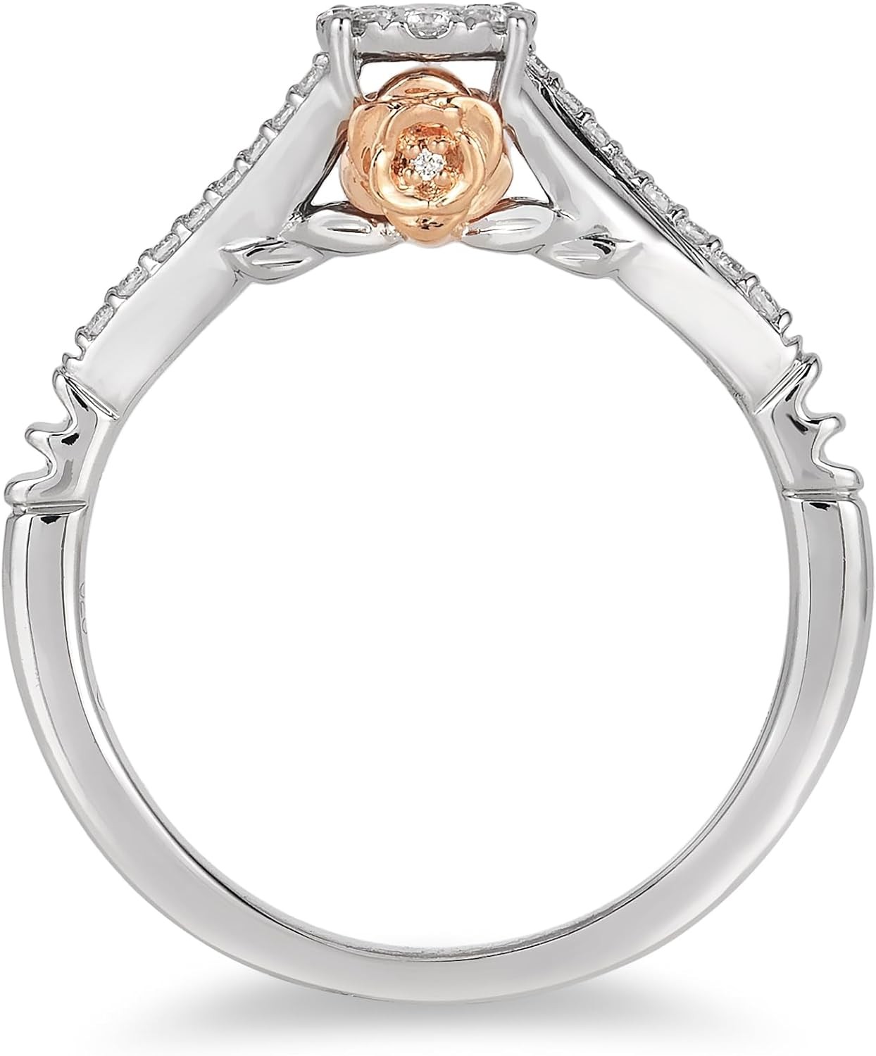 Jewelili Enchanted Disney Fine Jewelry 10K White Gold and Rose Gold 1/5 Cttw Diamond Belle Promise Ring