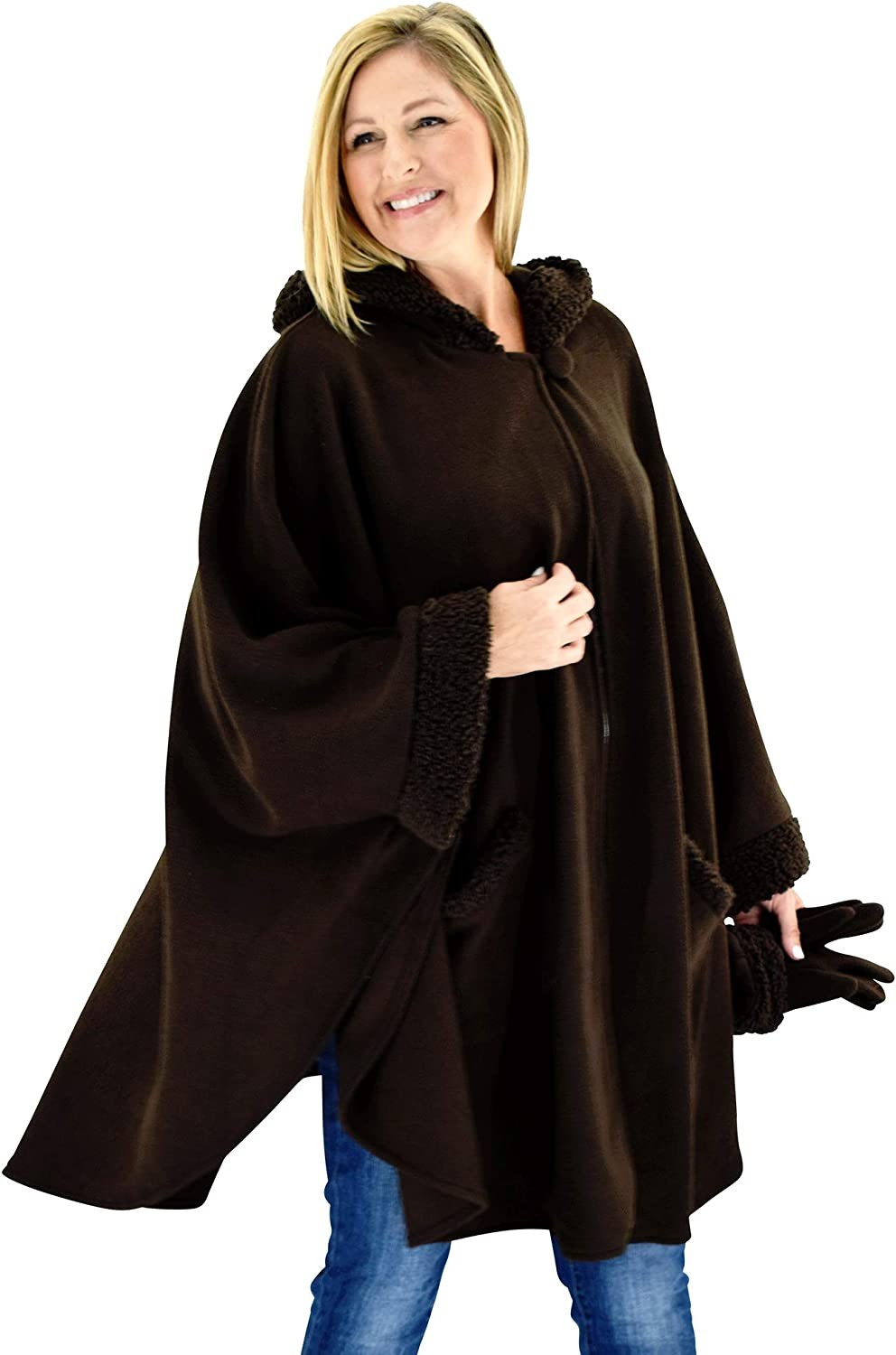 CLASSIC LOOK, MODERN DESIGN: Elegantly trimmed in faux Sherpa wool, this beautiful ensemble promises to endow you with a sophisticated air while feeling so comfortable, you’ll swear you’re wearing your favorite blanket underneath. Just add your favorite pair of pants and some stylish boots – the included matching gloves complete the outfit.