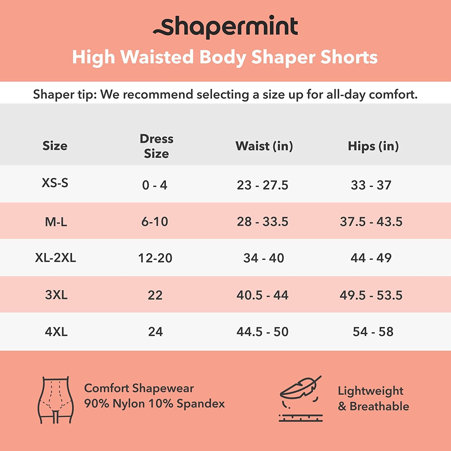 90% Nylon, 10% Spandex Imported Pull-On closure Machine Wash SIZING TIP: We recommend selecting a size up for all day comfort with our body shaper for women. For a more sculpted look, select your actual size from the sizing chart. If in between sizes, please take the larger size. Always refer to our size chart for the best fit from small to plus size shapewear COMFORT & CONTROL: Our tummy control shapewear were made for comfortable everyday wear and to smooth out your tummy! It fits great under all types of clothing STAYS IN PLACE: Our high waist shaper shorts stays in place for all-day secure fit! Whether you’re recovering from postpartum, wearing them under a dress or relaxing at home. Our shapewear for women tummy control is lightweight and breathable WAIST, THIGH & BACK COVERAGE: Instantly feel supported and slimmed. Shapermint for women tummy control shapewear is designed to effortlessly tuck your tummy, slim your thighs and smooth your back MACHINE WASHABLE: Simply throw our shapewear shorts in the washer with your colors and tumble dry on low