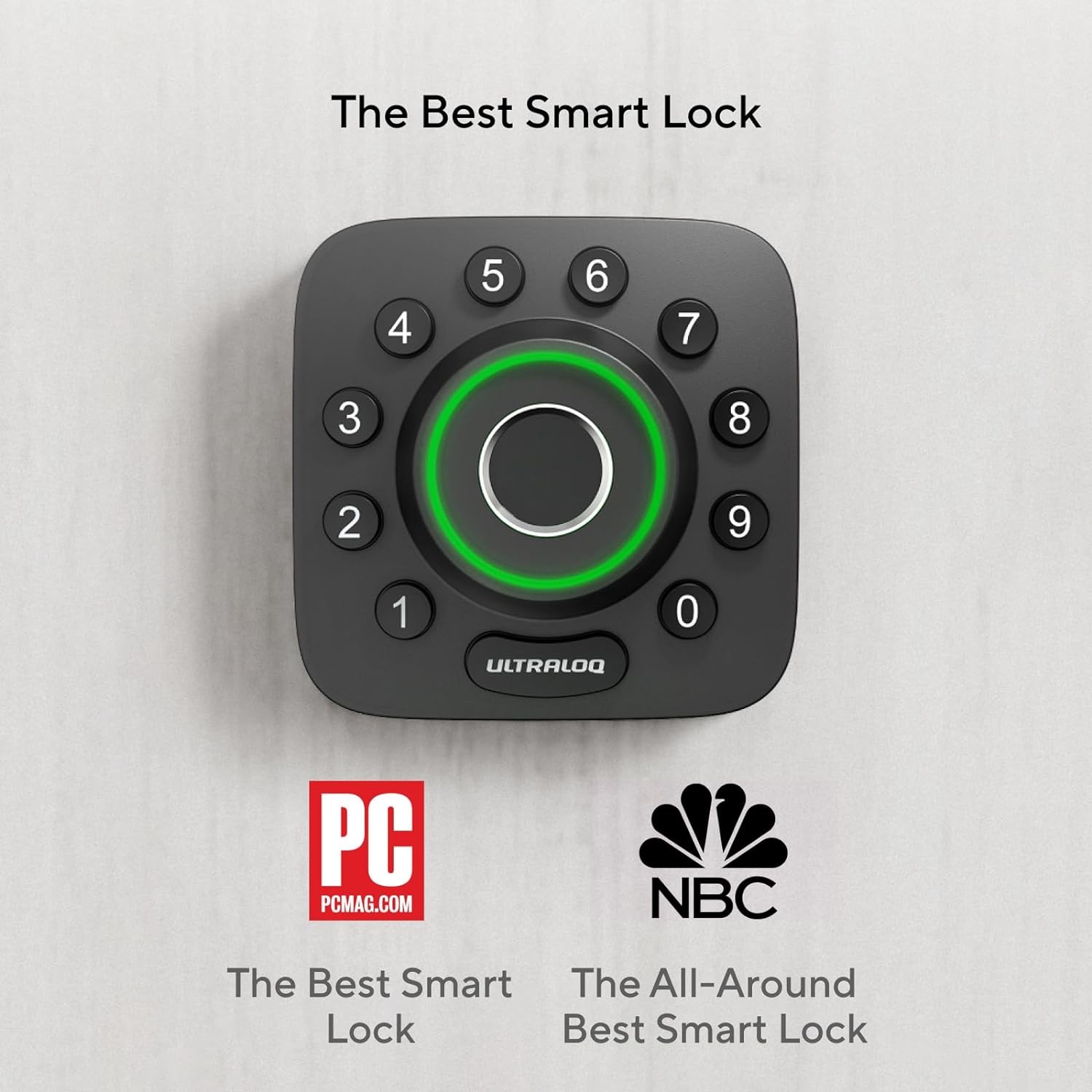 ULTRALOQ U-Bolt Pro Smart Lock, 7-in-1 Keyless Entry Door Lock with Fingerprint ID, App and Keypad, Smart Door Lock, Smart Deadbolt, Smart Locks for Front Door, Smart Deadbolt, IP65 Waterproof