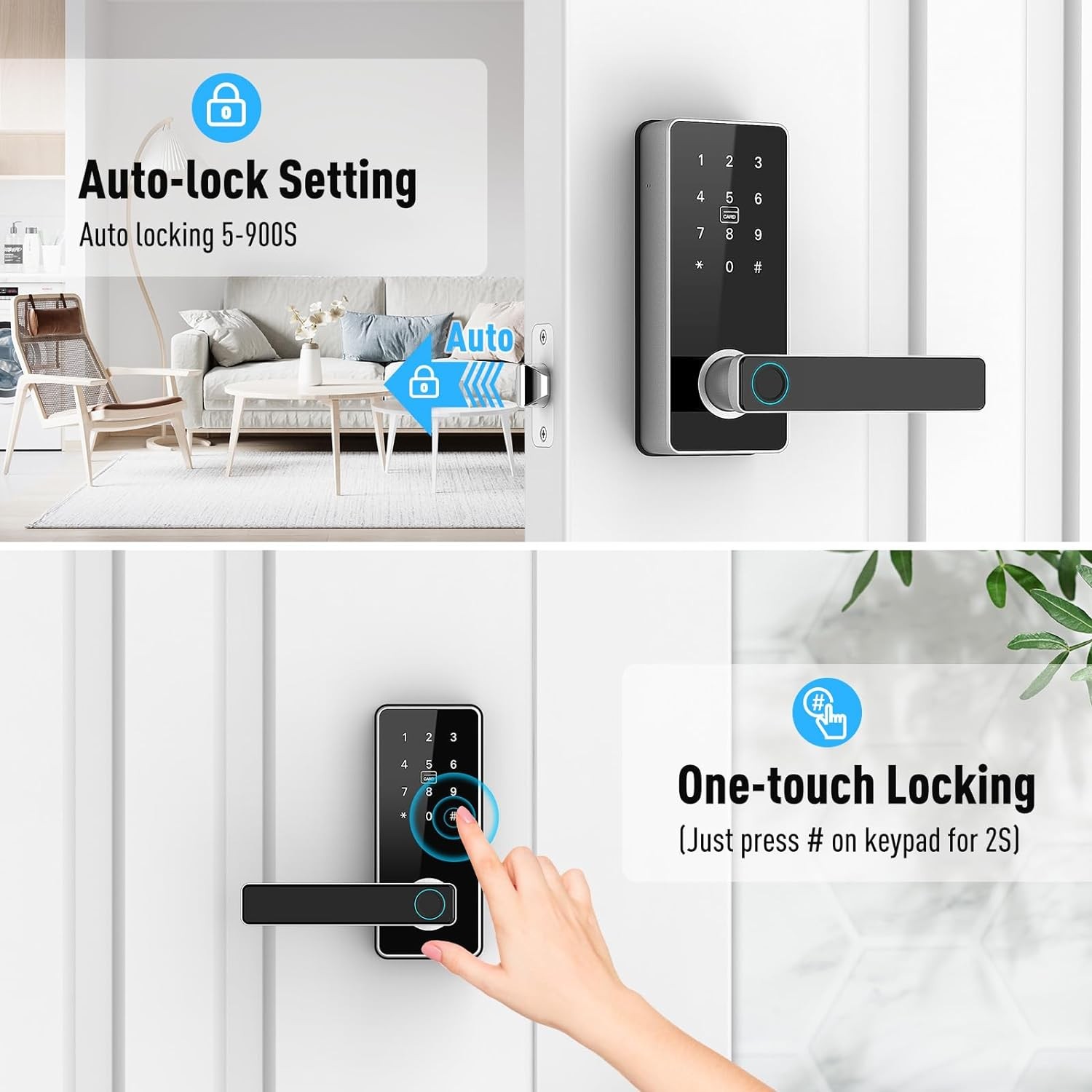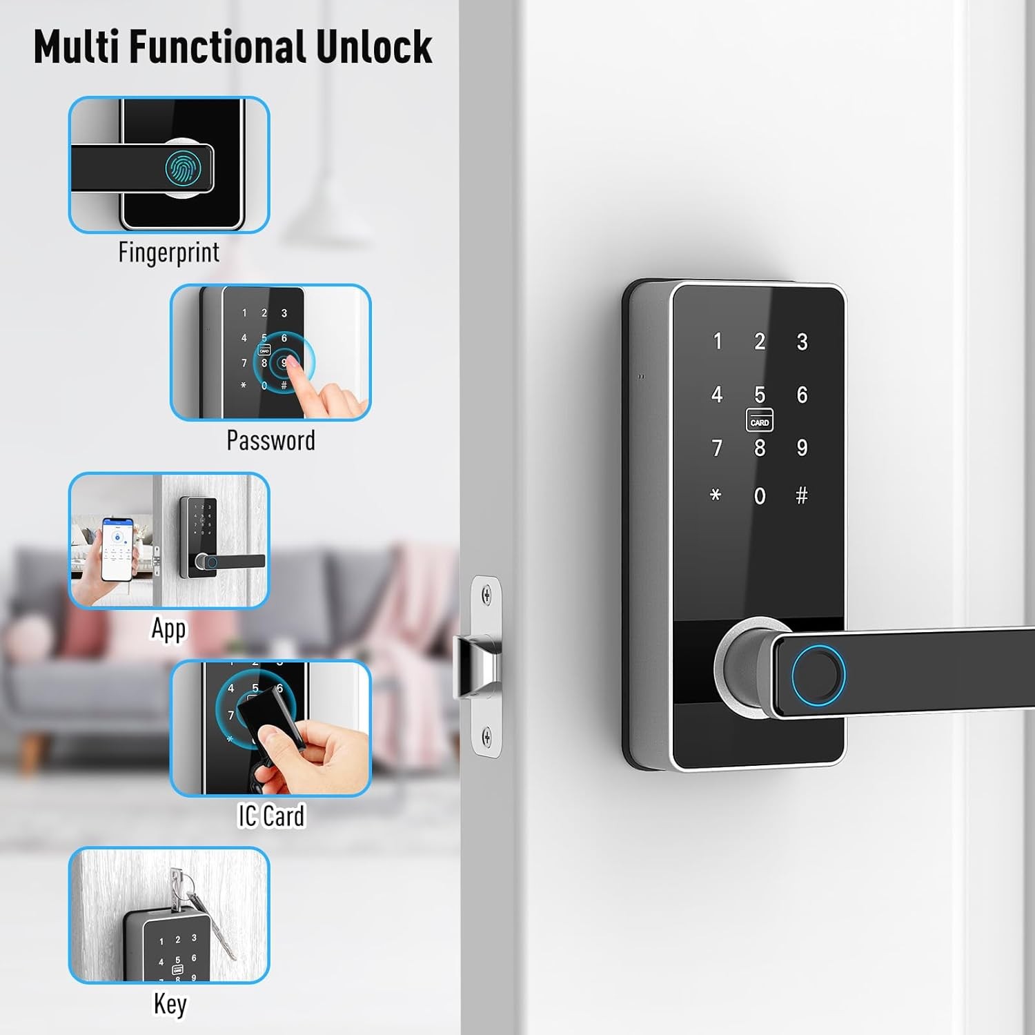 Keyless Entry Door Lock, KPP 6-in-1 Smart Lock with Handle, Fingerprint Door Lock, Smart Locks for Front Door, Smart Door Lock, Digital Door Lock, Keypad Deadbolt Lock for Home Office Rental