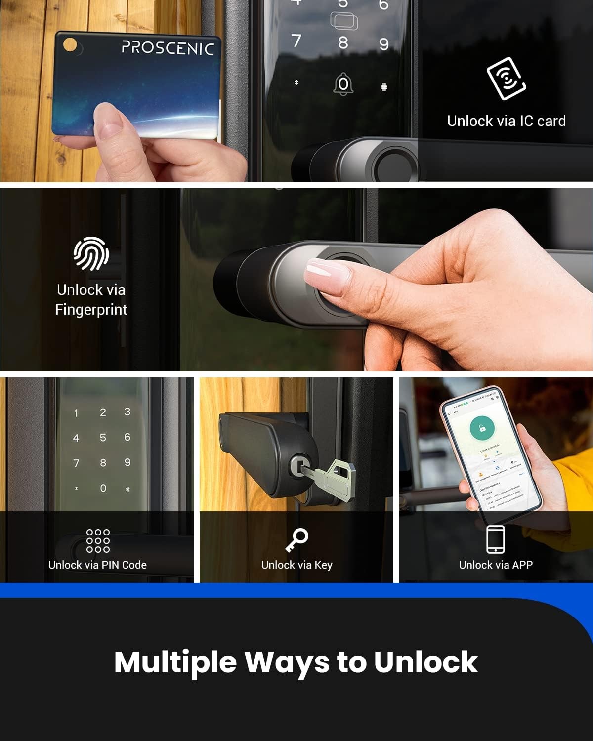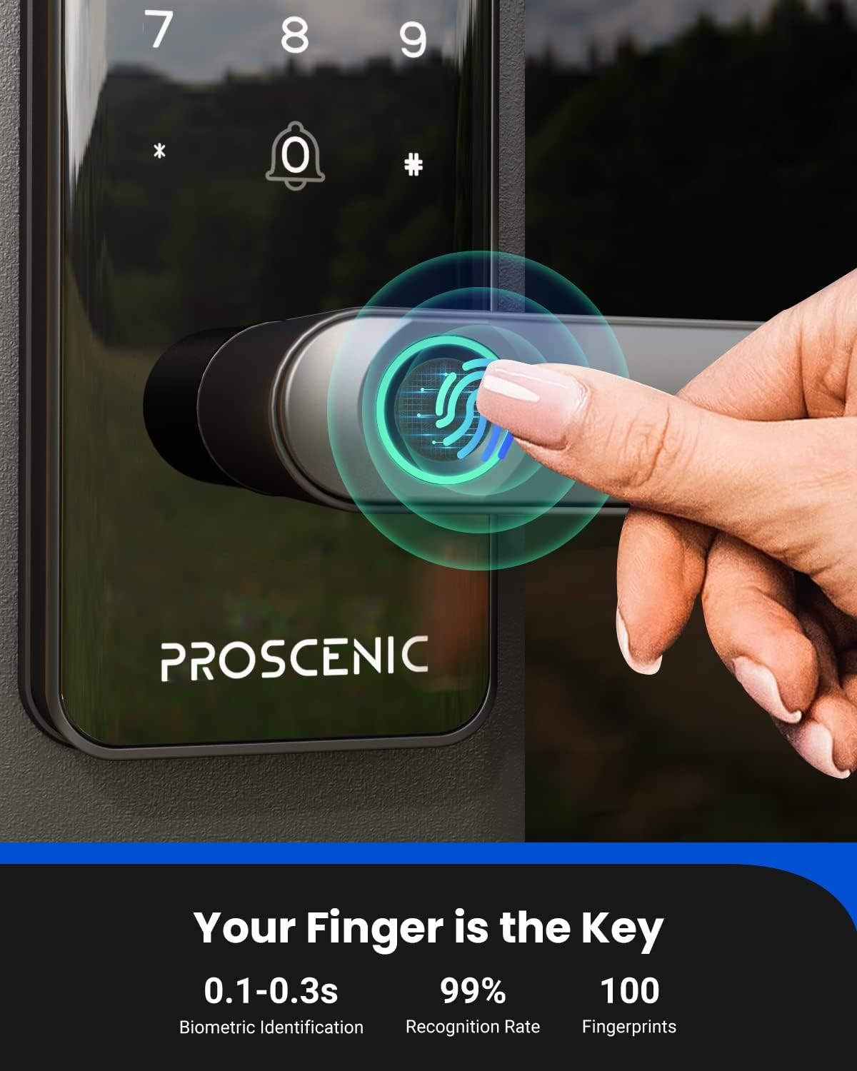 Smart Door Lock, Proscenic Keyless Entry Door Lock with Handle, Fingerprint Door Locks Support WiFi & Bluetooth, Touchscreen Electronic Door Locks with Keypads for Front Door,Bedroom,Home,Hotel,Airbnb