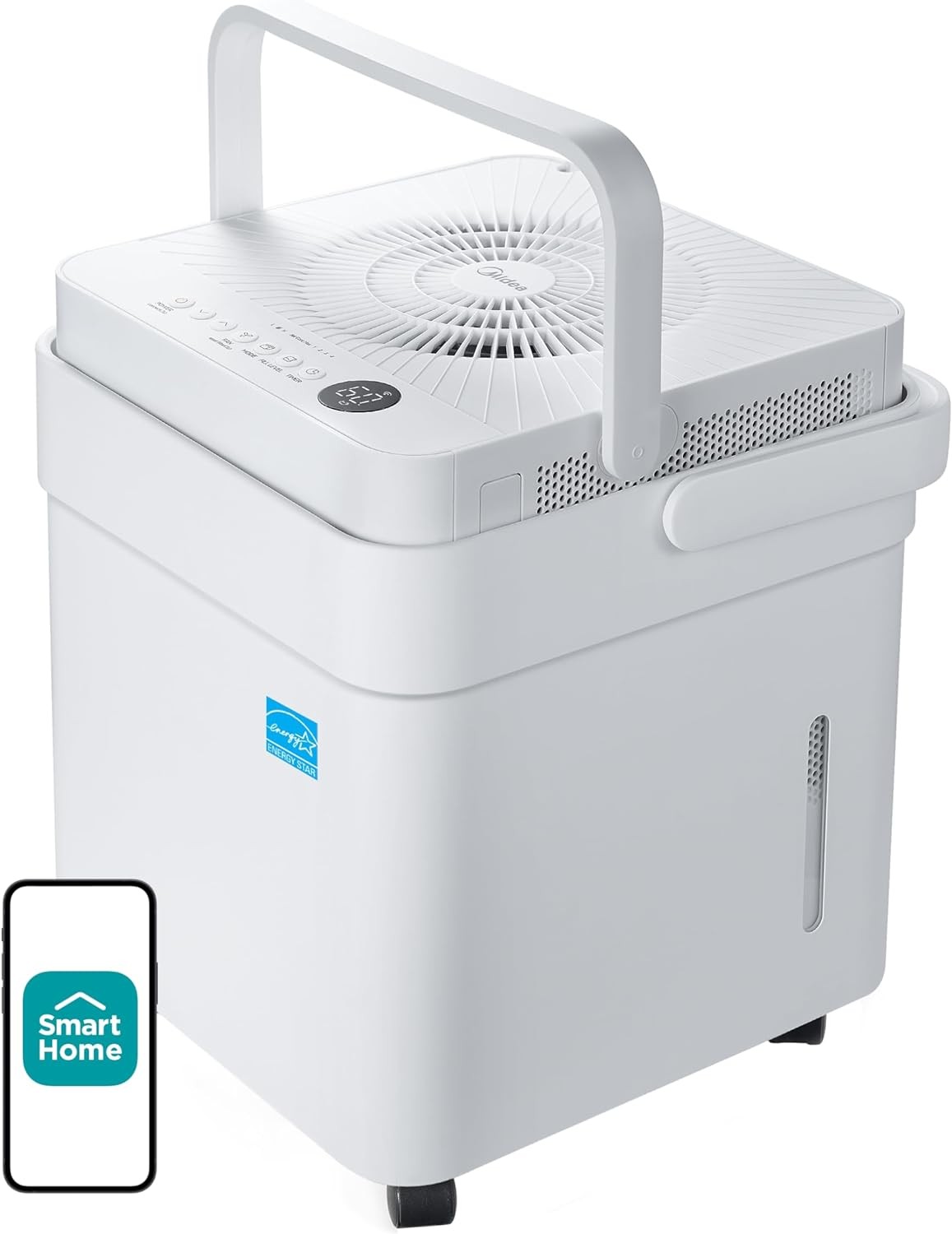 The Midea Cube dehumidifier has a unique lift-and-twist design that offers unparalleled flexibility and capacity: when operating in extended form, it has up to 3 times more water tank capacity than traditional dehumidifiers and can run longer without the hassle of frequently emptying the tank; when in nested or drain form, the unit is half the size allowing compact storage or flexible draining. It can fit into most rooms and maintain the desired humidity level in your home. The patented sensor and wi-fi enabled app allow you to monitor the humidity and water level, all at your fingertips. With multi-directional air intake and up to three different fan speeds, it is powerful enough to dehumidify your room, and quiet enough that you'll forget it's even there.