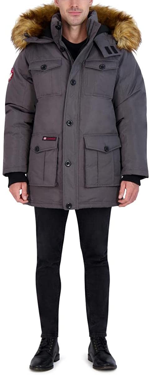 Nylon,Polyester,Acrylic Imported Zipper closure Machine Wash FUNCTIONAL STYLE: Take on the coldest weather in this heavyweight insulated parka coat by Canada Weather Gear; Functional and durable, this rugged coat will keep you warm all winter long; Perfect for outdoor adventure or daily wear DURABLE MATERIALS: 100% Polyester water/wind resistant shell, insulation and lining; 75% Acrylic/25% Polyester faux fur trim; Machine Wash DESIGNED FOR WARMTH: Warm poly fill insulation and waterproof materials allow you to endure extreme conditions; It's heavyweight design packs in the heat while venturing out into the elements FEATURES: Warm fleece lined hood, removable faux fur trim and storm cuffs for extra warmth; Button and zip closures; Multiple large exterior button pockets to safely store your essentials; Maintains warmth 15 C for low activity / -20 C for moderate activity Built for the man who loves to be outdoors with comfort and style in mind. The Canada Weather Gear outerwear collection brings high quality functional styles designed with warmth and utility