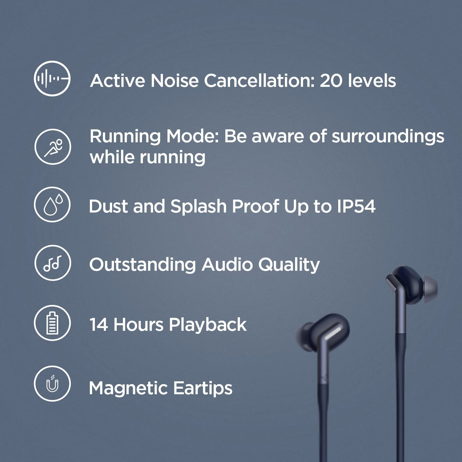 OTHER FEATURES: The earbuds have built-in magnets for convenient power off and power saving. Sweat and water proof of IP54. More personalized features can be set up using Libratone APP.