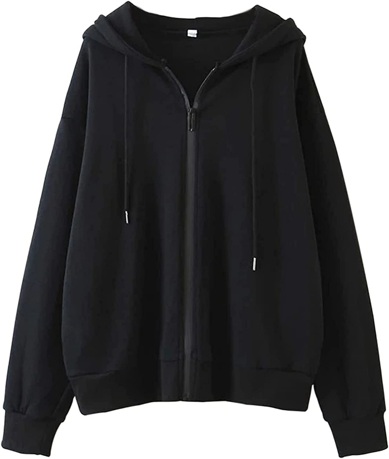 Features:Vintage hoodies for women,full zipper, long sleeve, two pockets, fleece lining, solid color oversized hooded, brown zip up hoodies, hoodie, boyfriend style sweatshirt, 90s E-girl sweatshirt pullovers, basic Hoody for women, teen girl.2000s style.